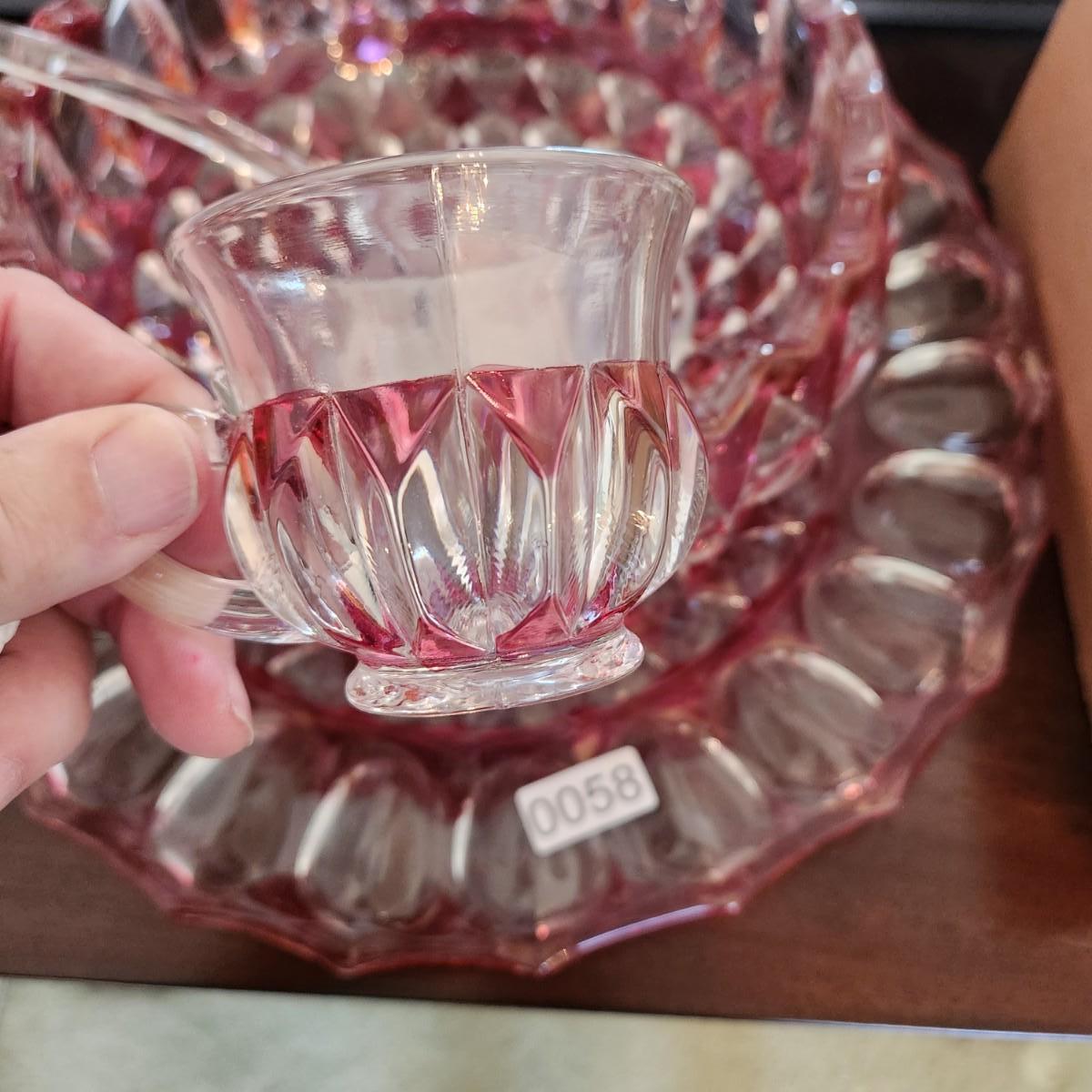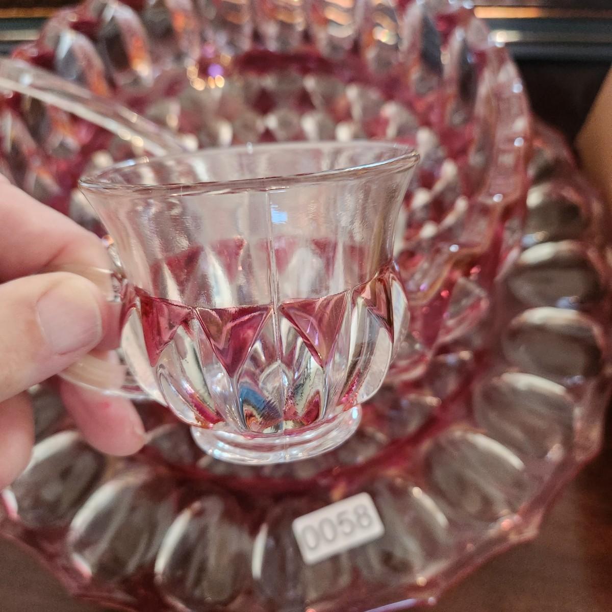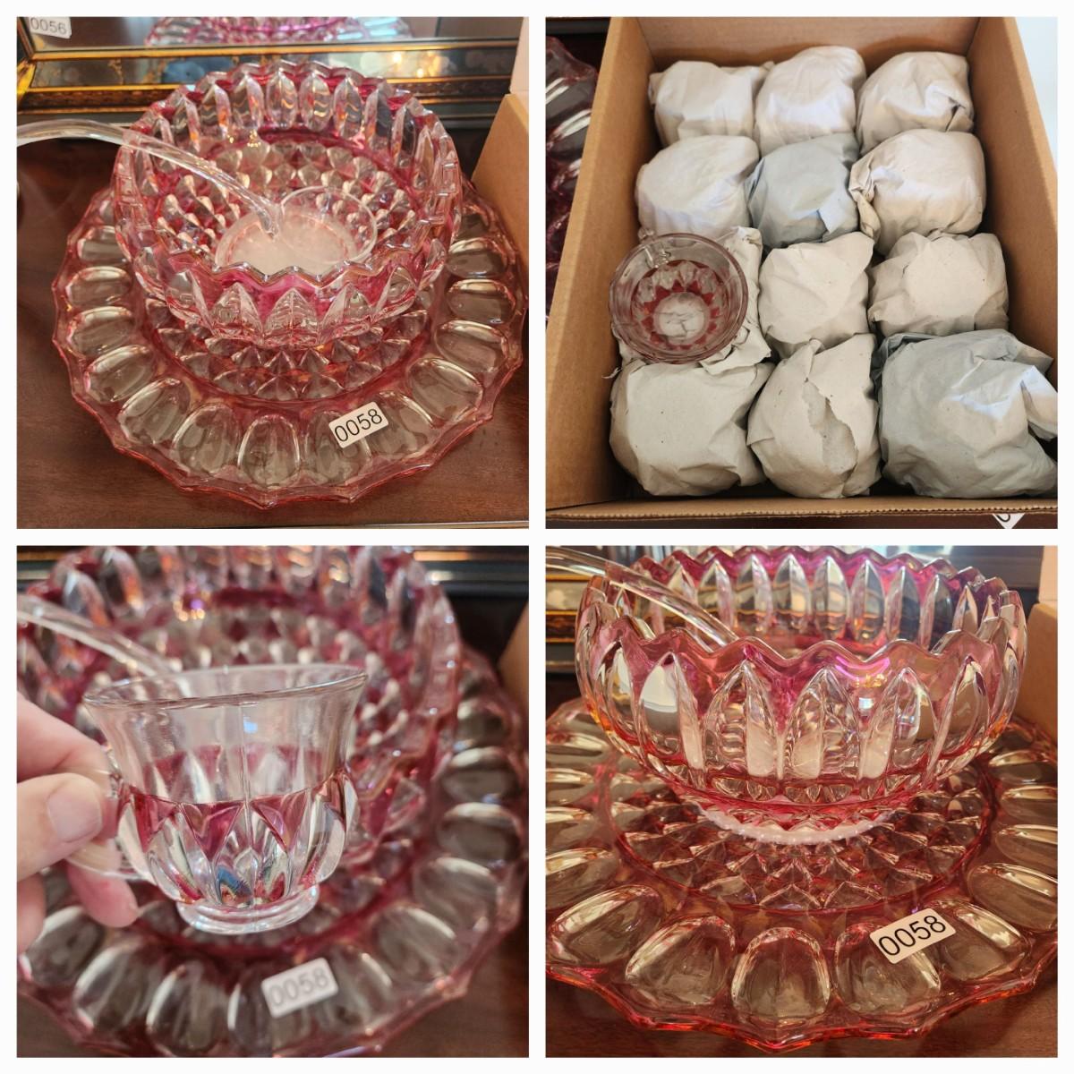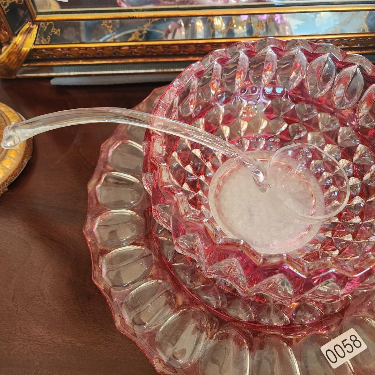 Heavy Cut Glass Punch Bowl On Charger with 12 Cups & Ladel