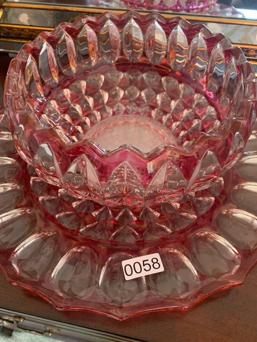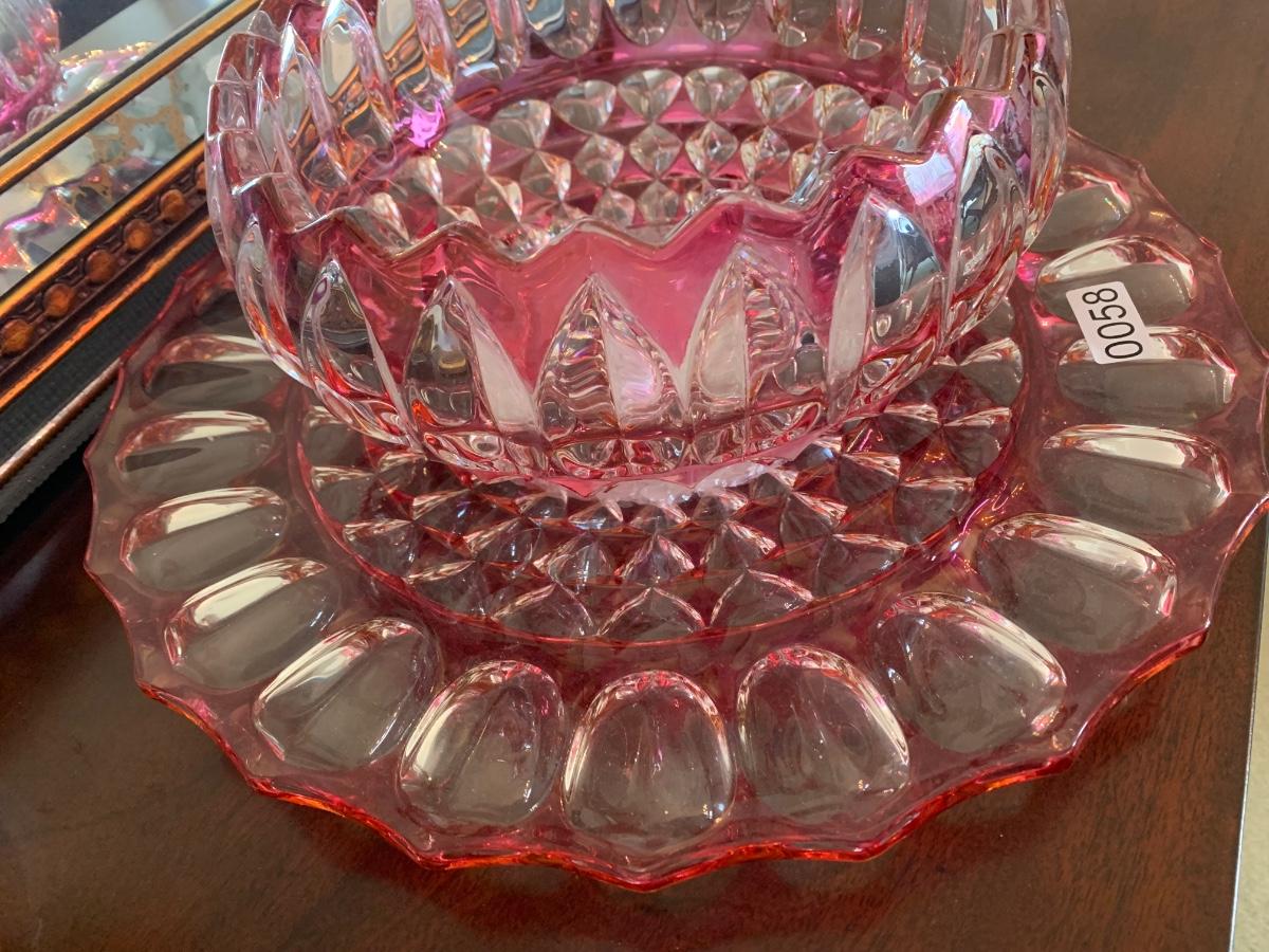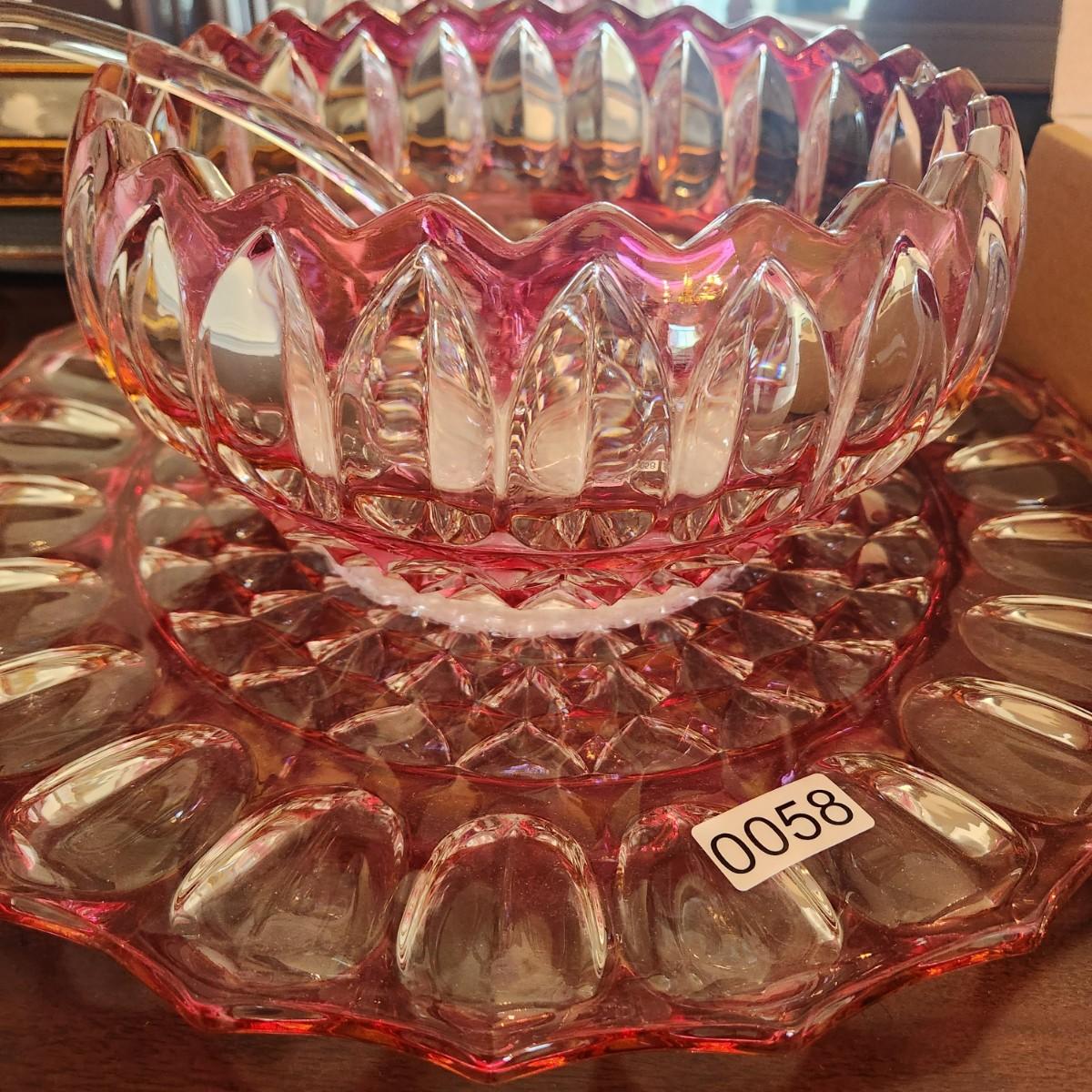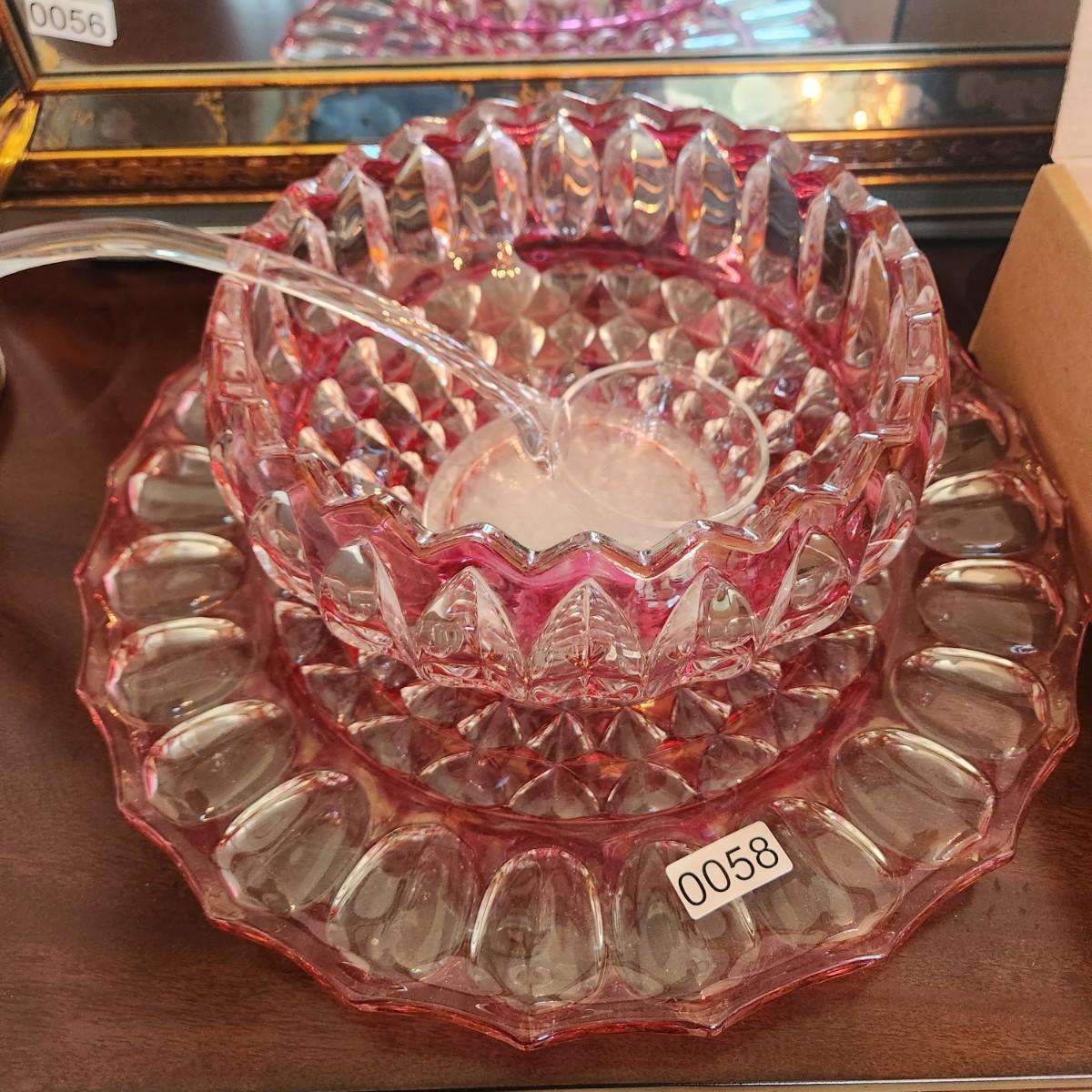 Heavy Cut Glass Punch Bowl On Charger with 12 Cups & Ladel