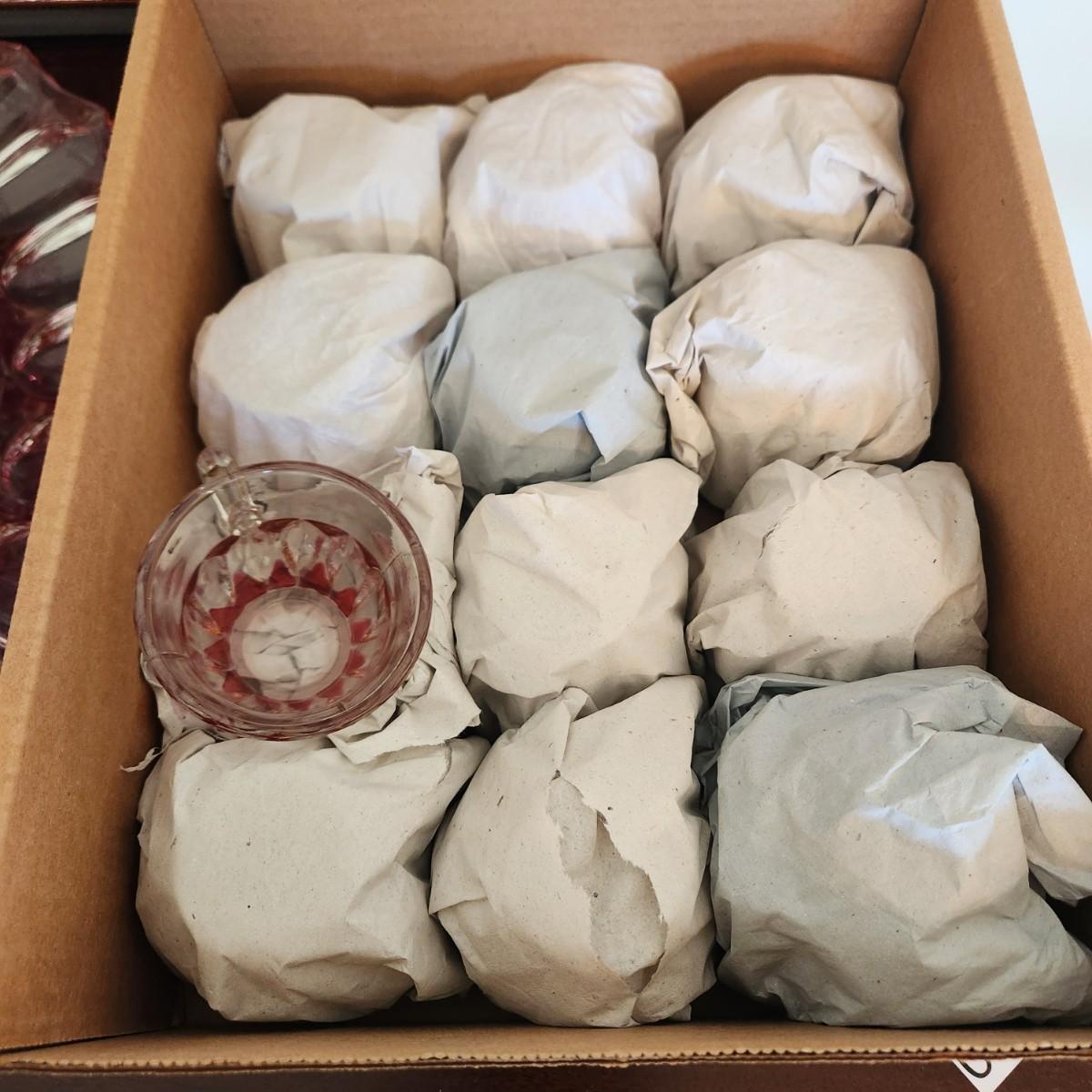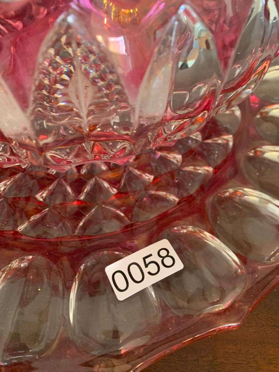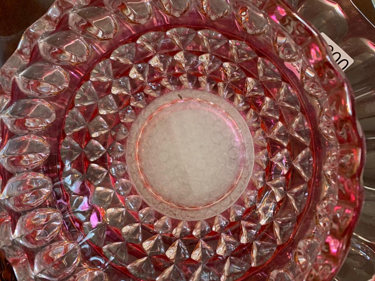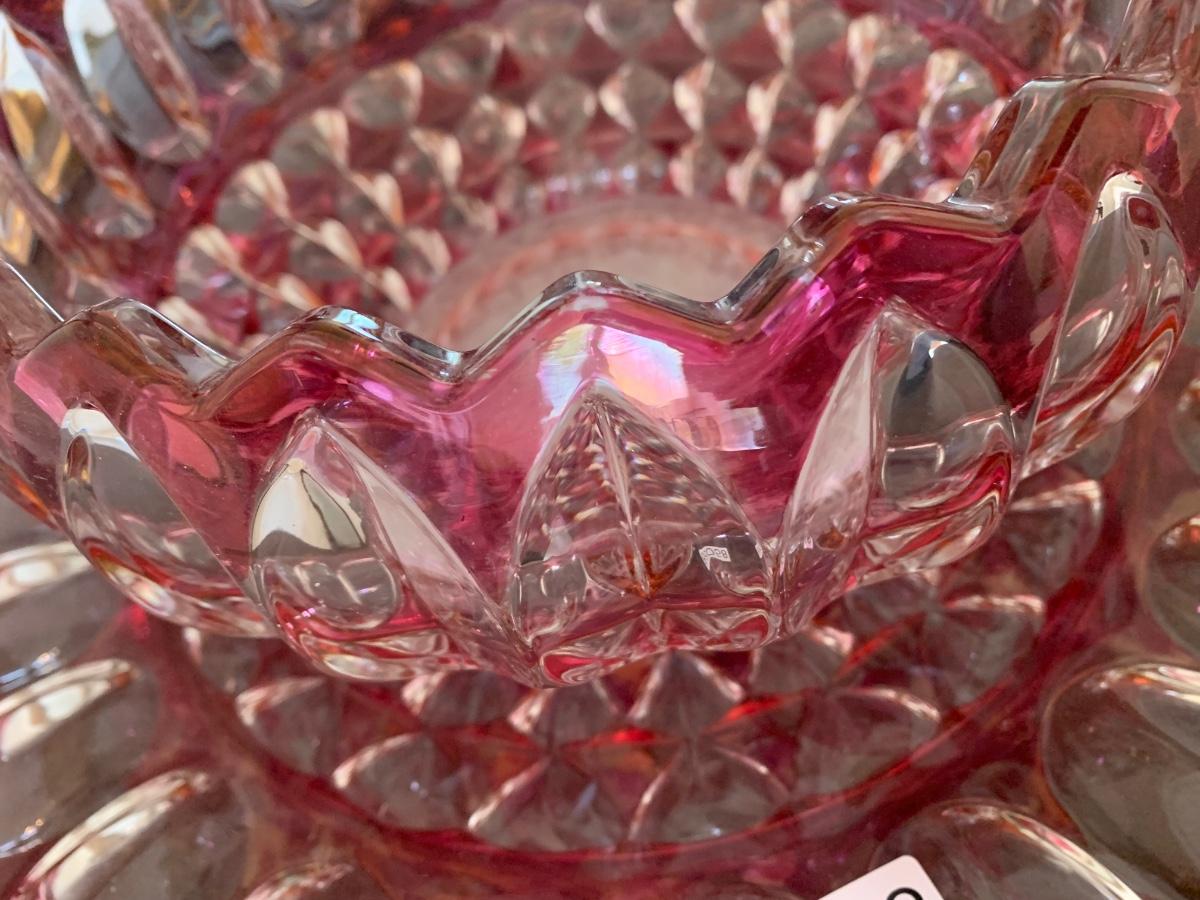 Heavy Cut Glass Punch Bowl On Charger with 12 Cups & Ladel
