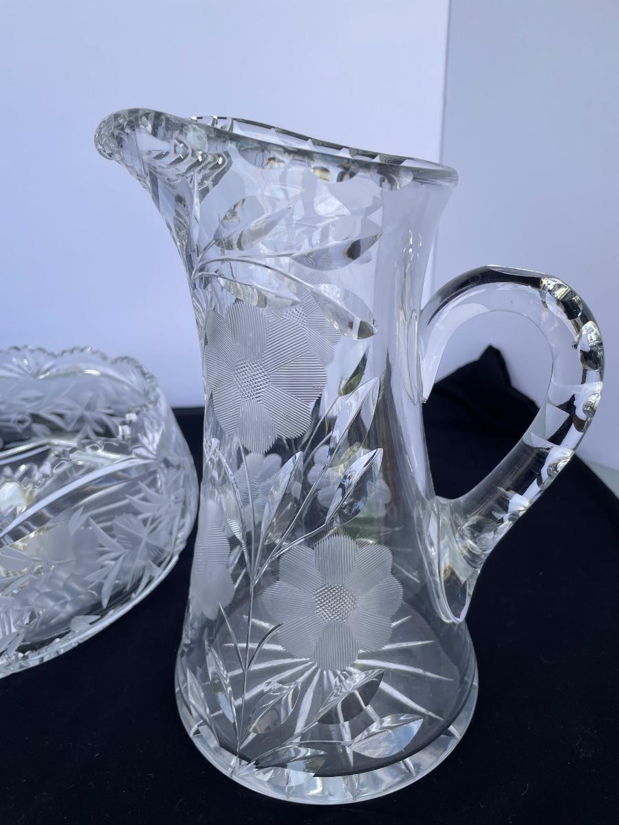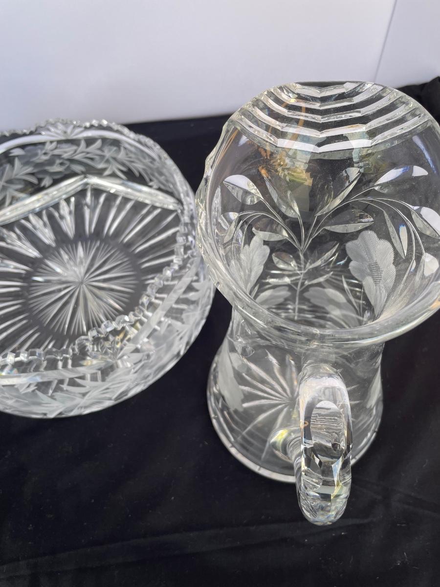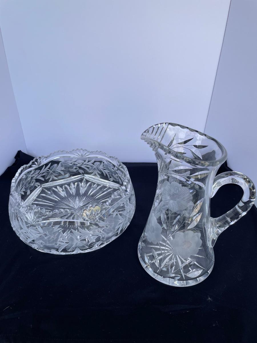 Heavy Cut/Etched Crystal Pitcher and Centerpiece Bowl