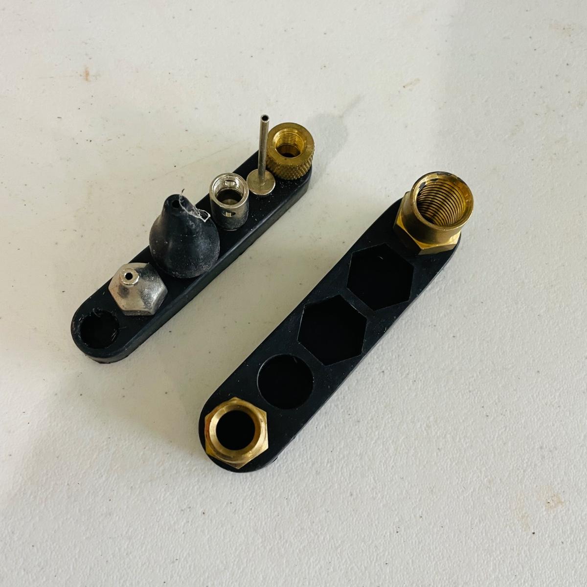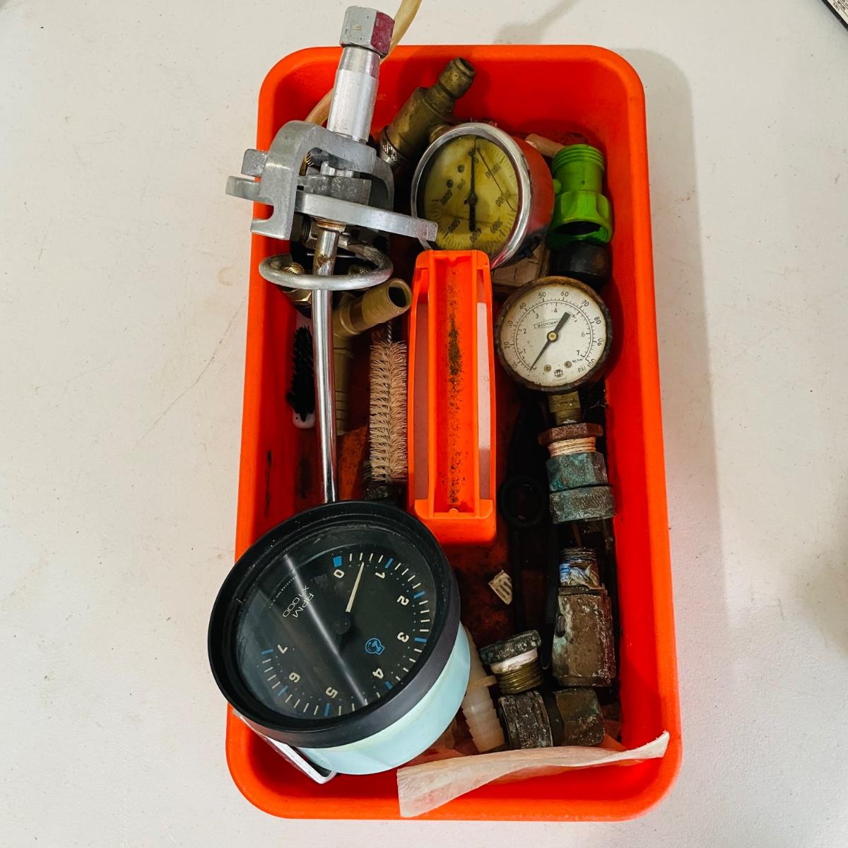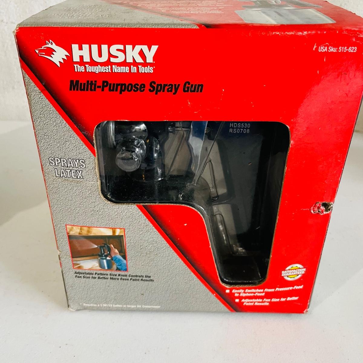 Lot includes 1qt Central Pneumatic Heavy Duty air paint spray gun in new condition. A Husky multi-purpose spray gun, brand new condition. A 5oz spray gun with 3 5oz containers, 4 1qt spray guns with containers. Also includes a bin of random spray gun accessory parts.