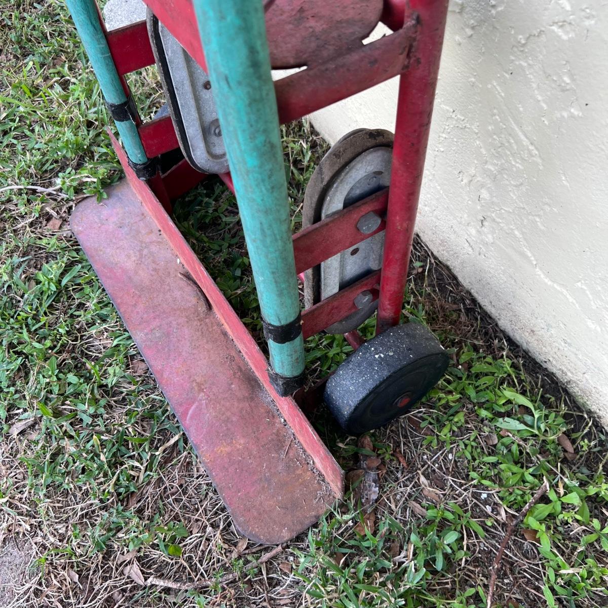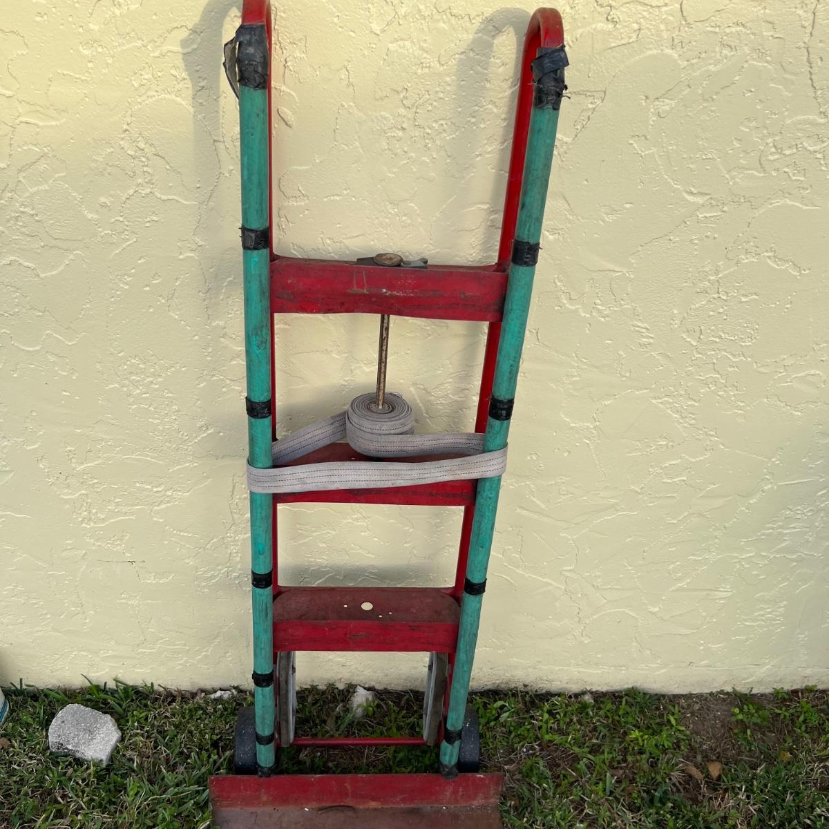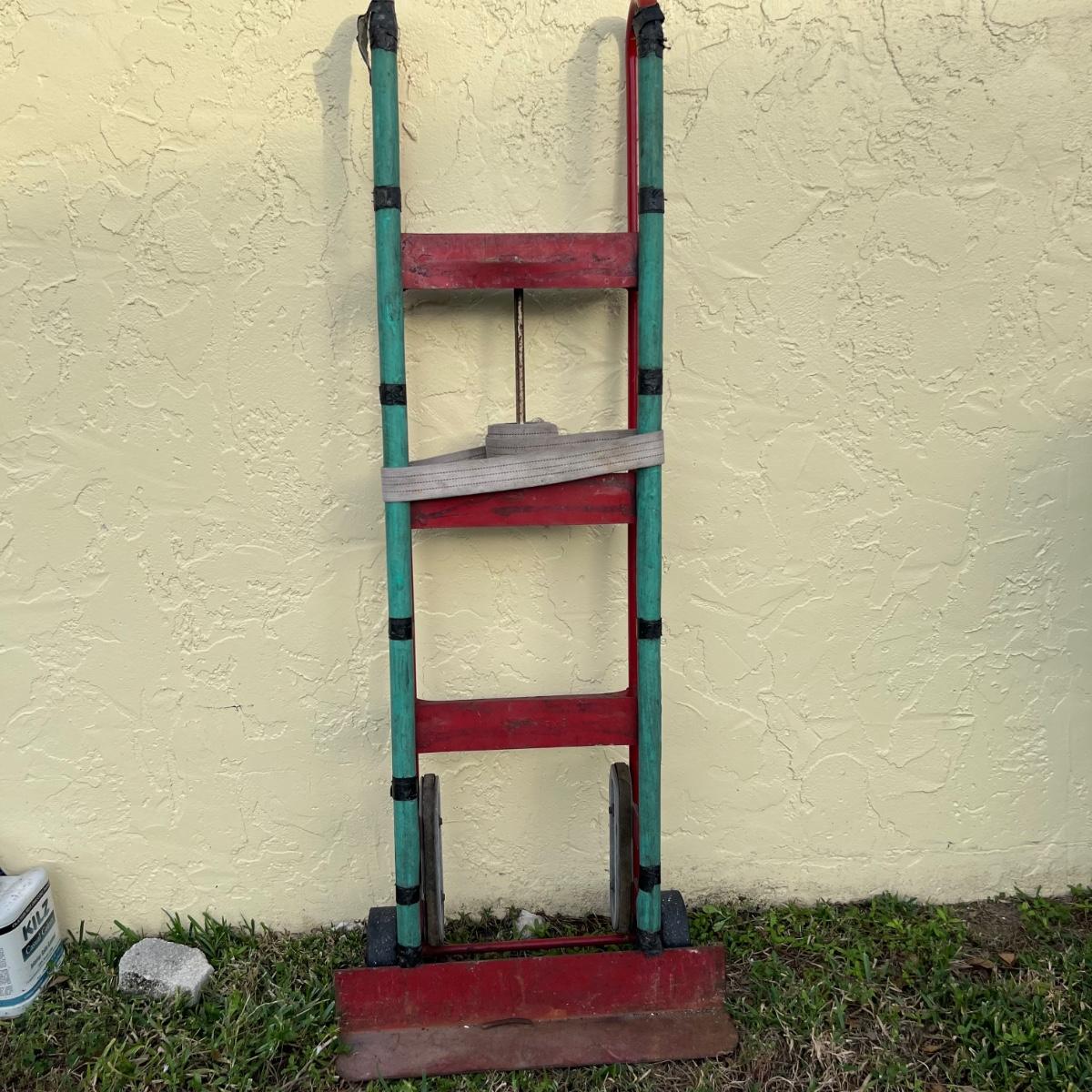 Sturdy, aged appliance mover. Still works good and in fine condition. Might need a little work, still useable. Measures at 5ft.