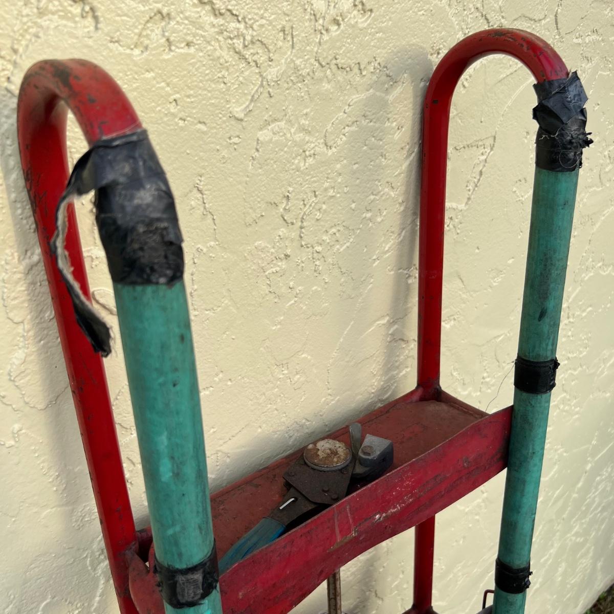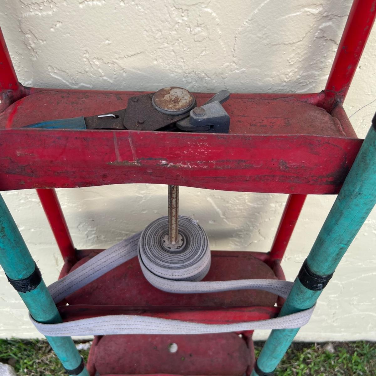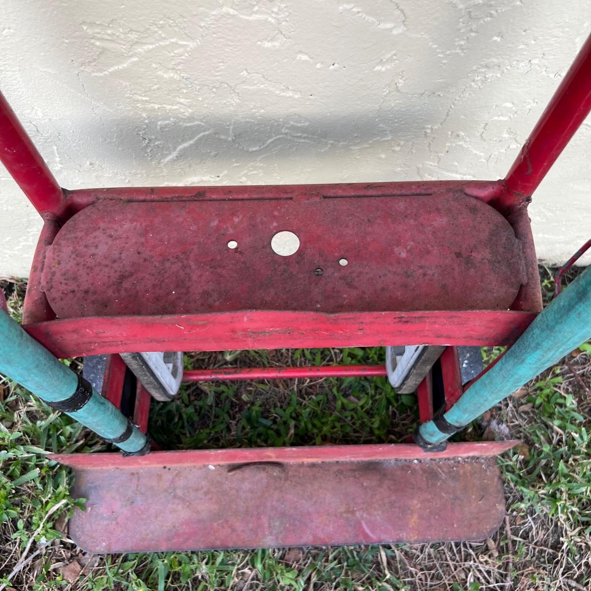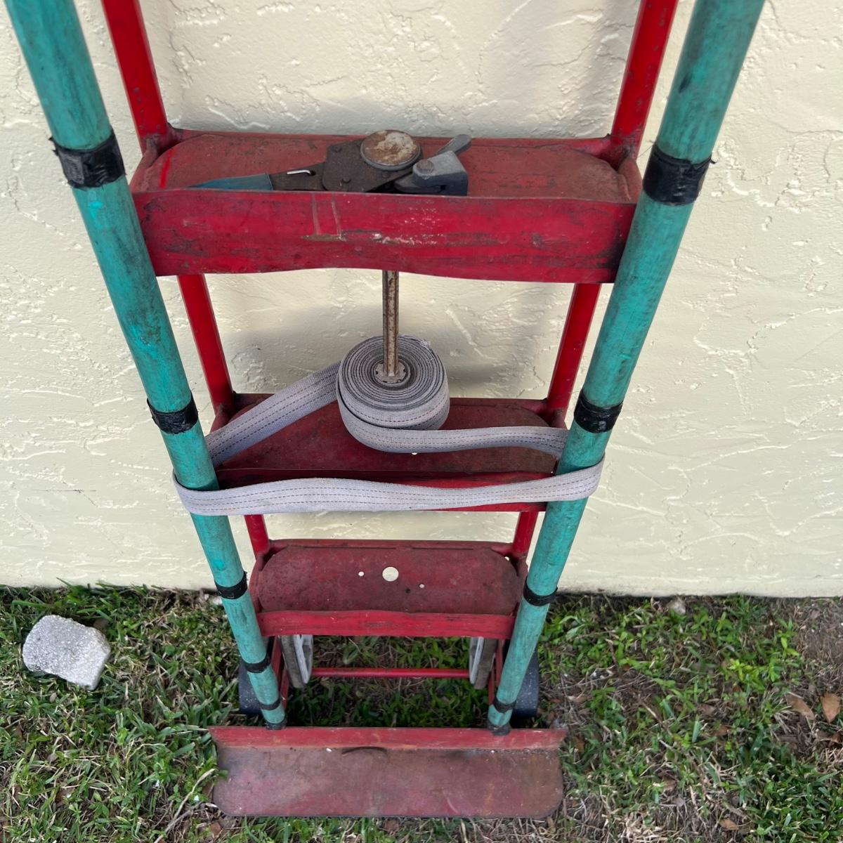 Sturdy, aged appliance mover. Still works good and in fine condition. Might need a little work, still useable. Measures at 5ft.