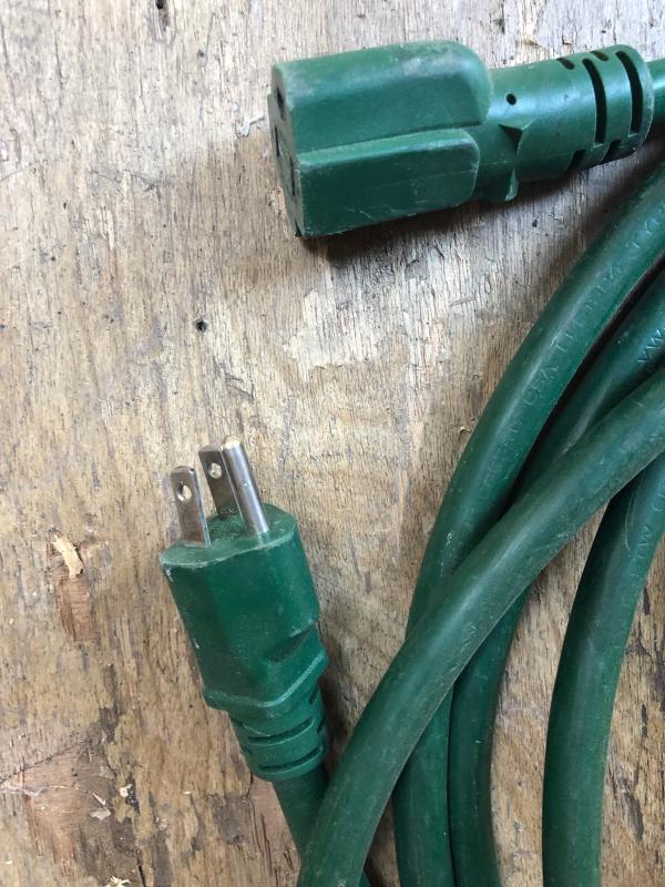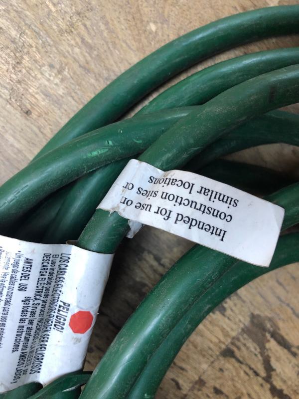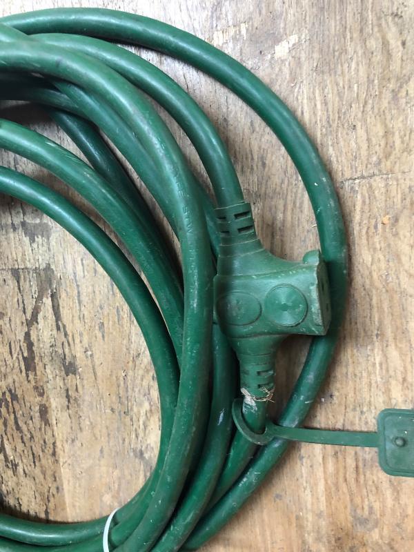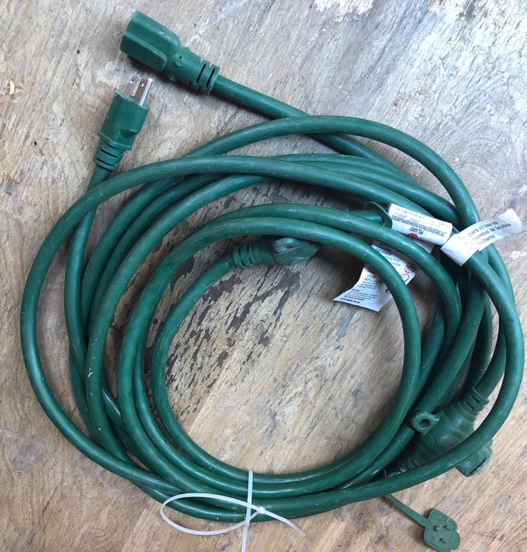Multiple outlet heavy duty job site cord, 20 feet long.