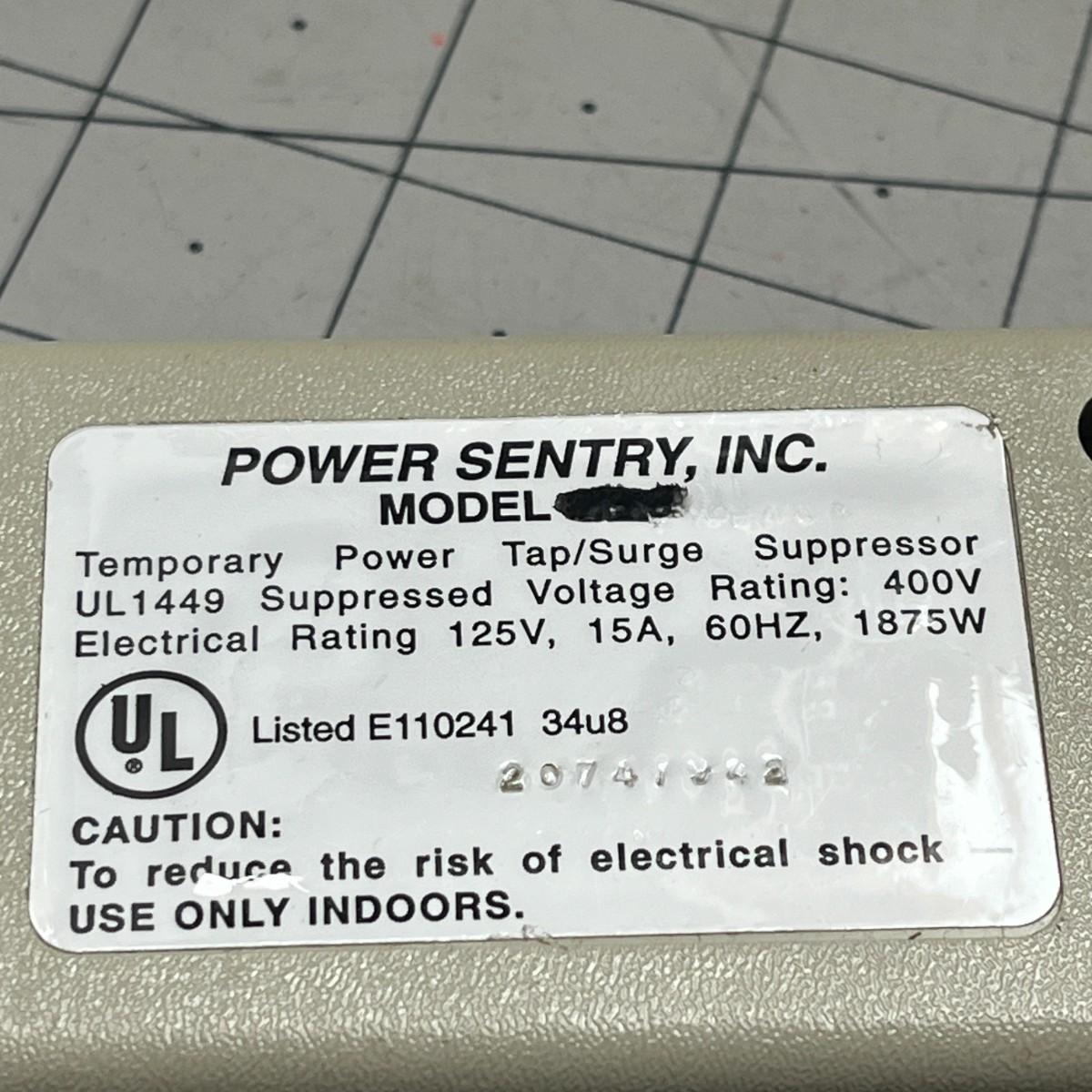Power Tap/surge Suppressor Ul1449 Suppressed Voltage Rating: 400v Electrical Rating 125v, 15a, 60hz, 1875w.