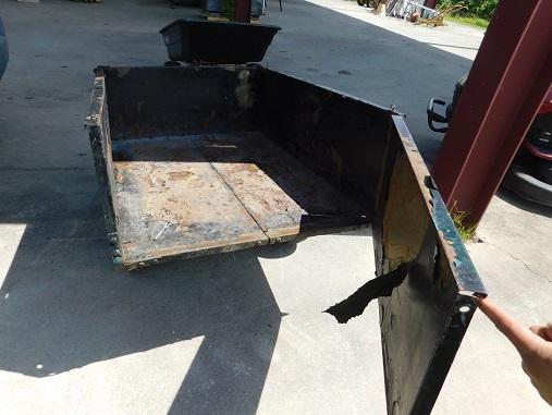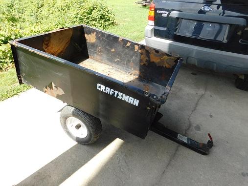 Heavy Duty Craftsman Metal Bed Garden Dump Trailer has some dents and dings as well as peeling paint but a solid wagon.