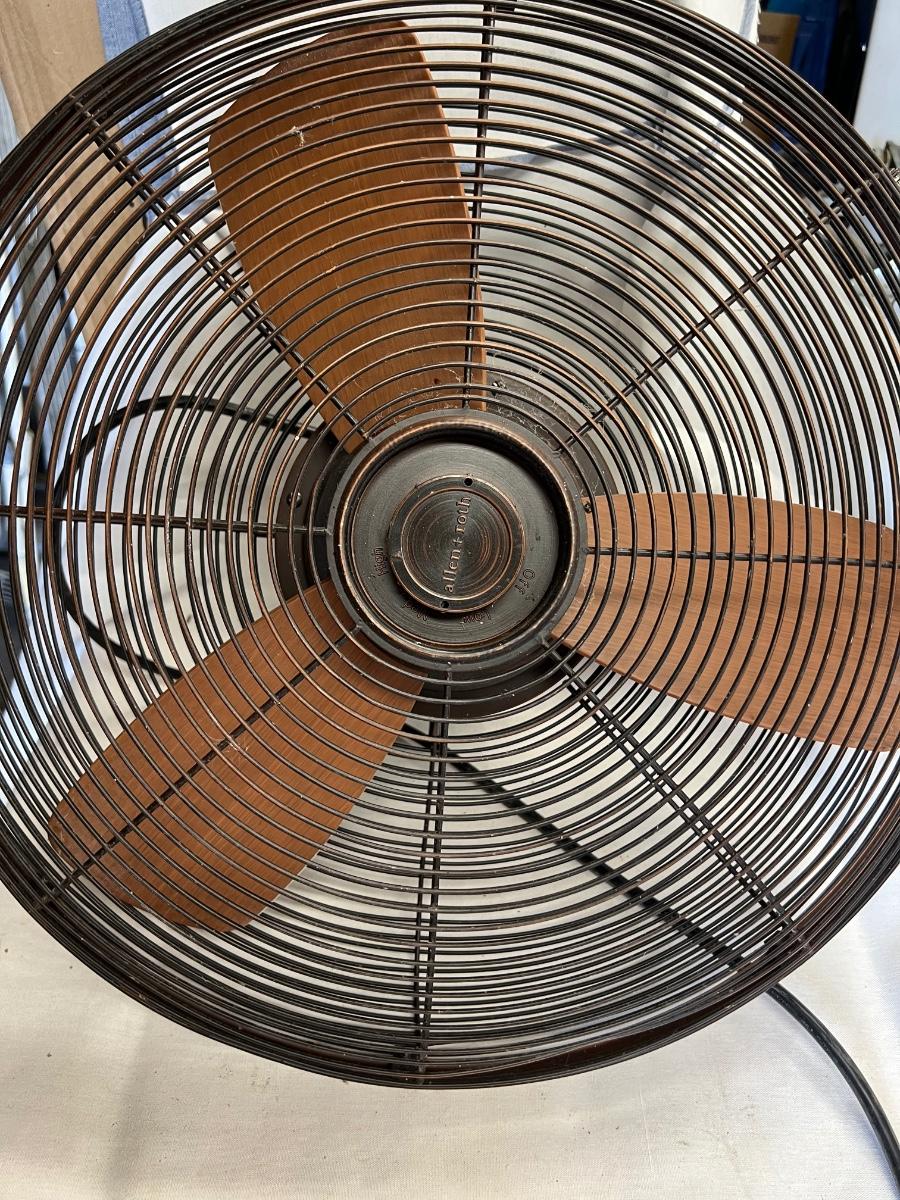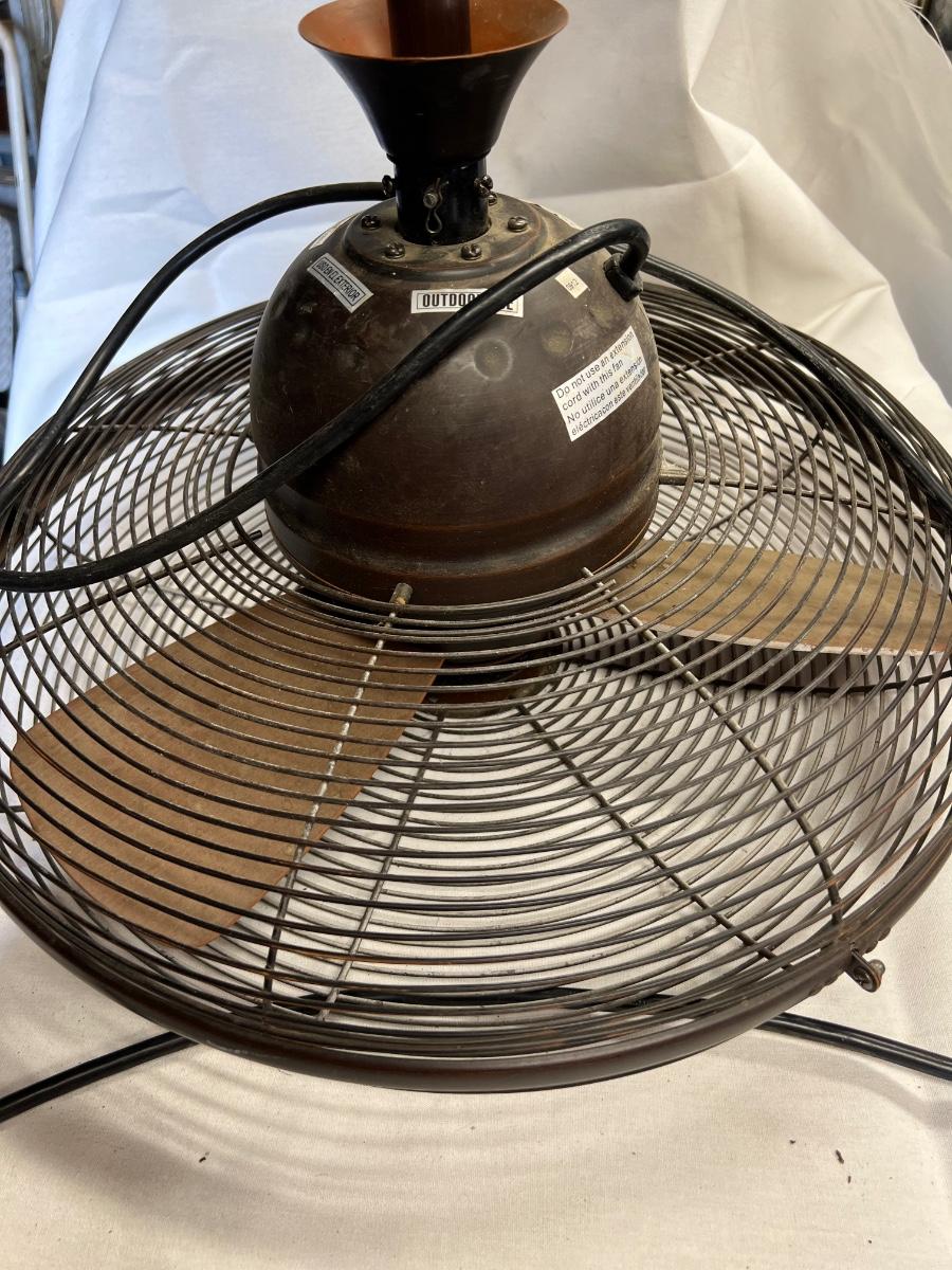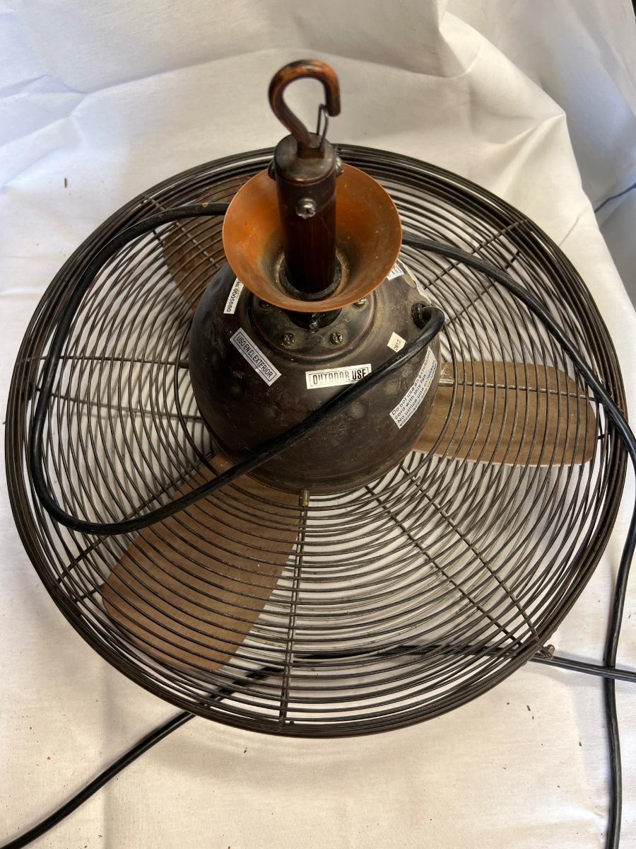 20” outdoor heavy duty fan, Allen + Roth brand, dark bronze color with wood grain blades