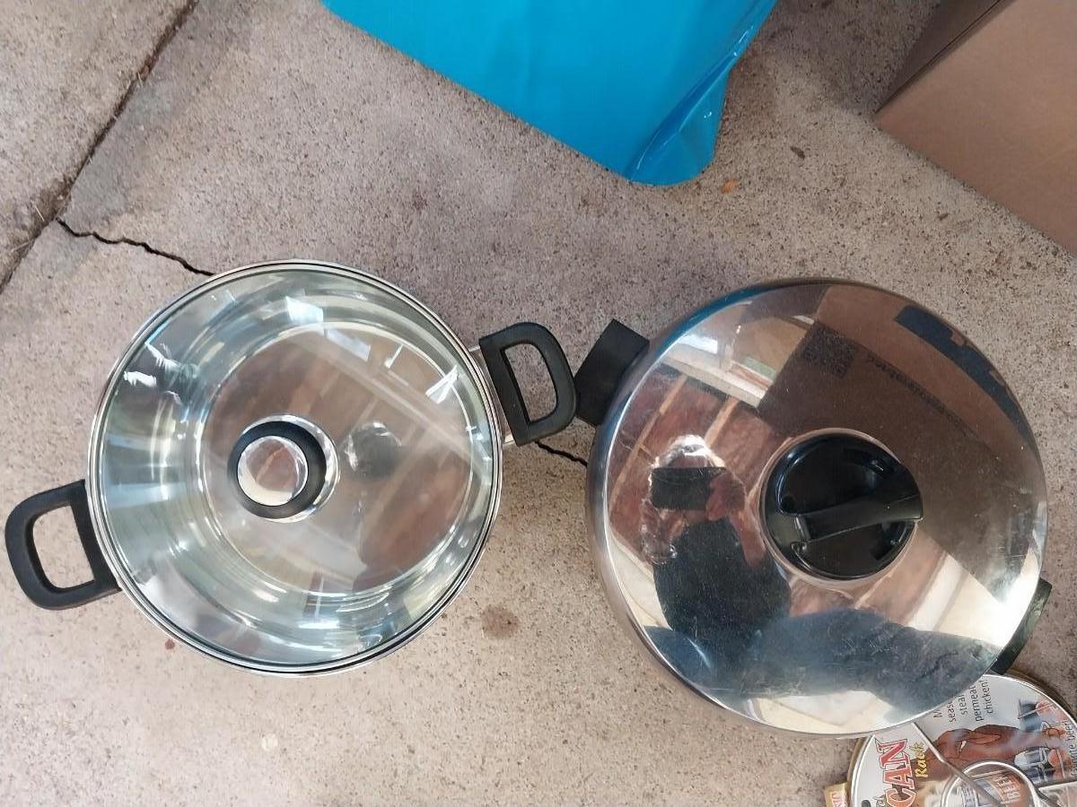 HEAVY DUTY ROASTER AND TWO QUART PANS WITH LIDS