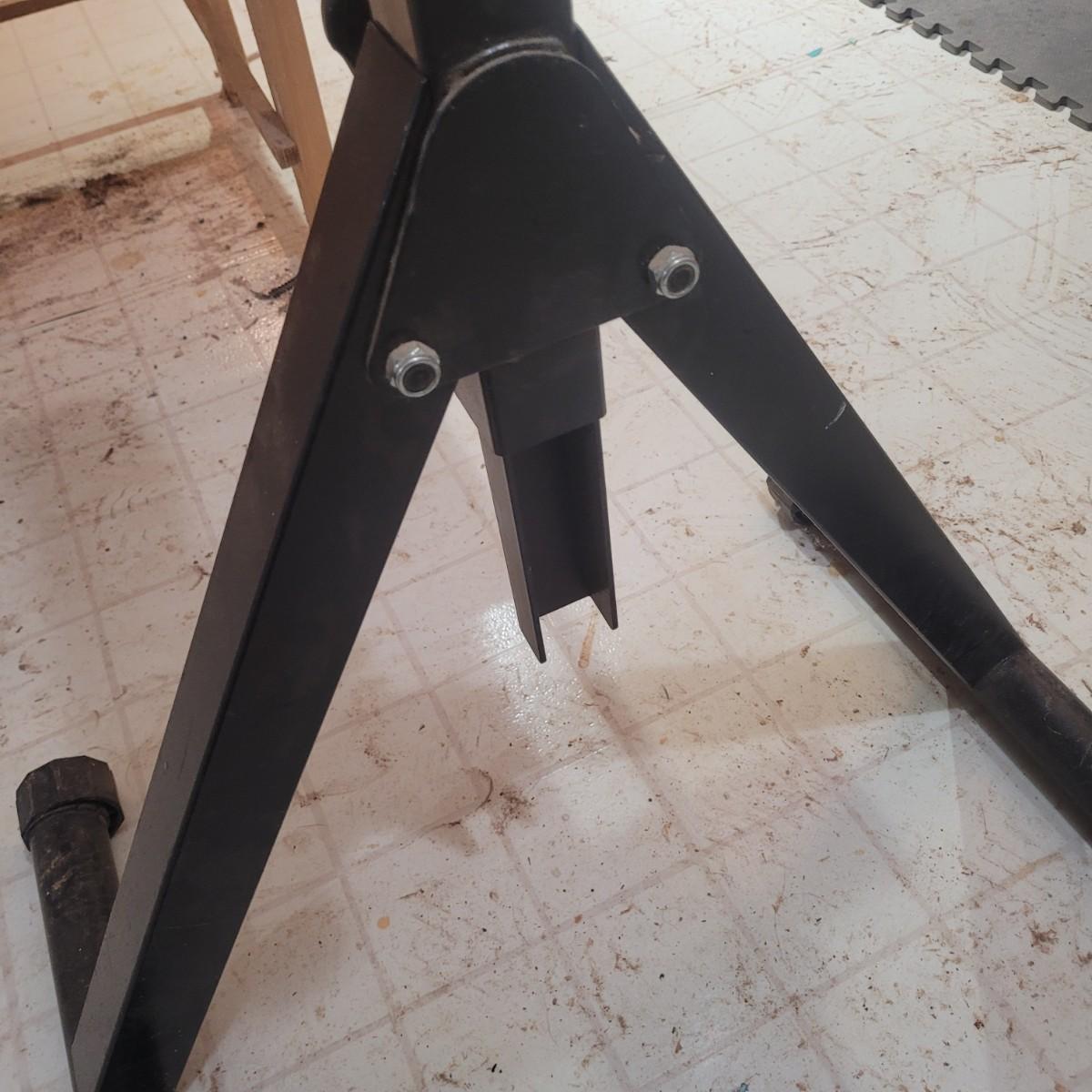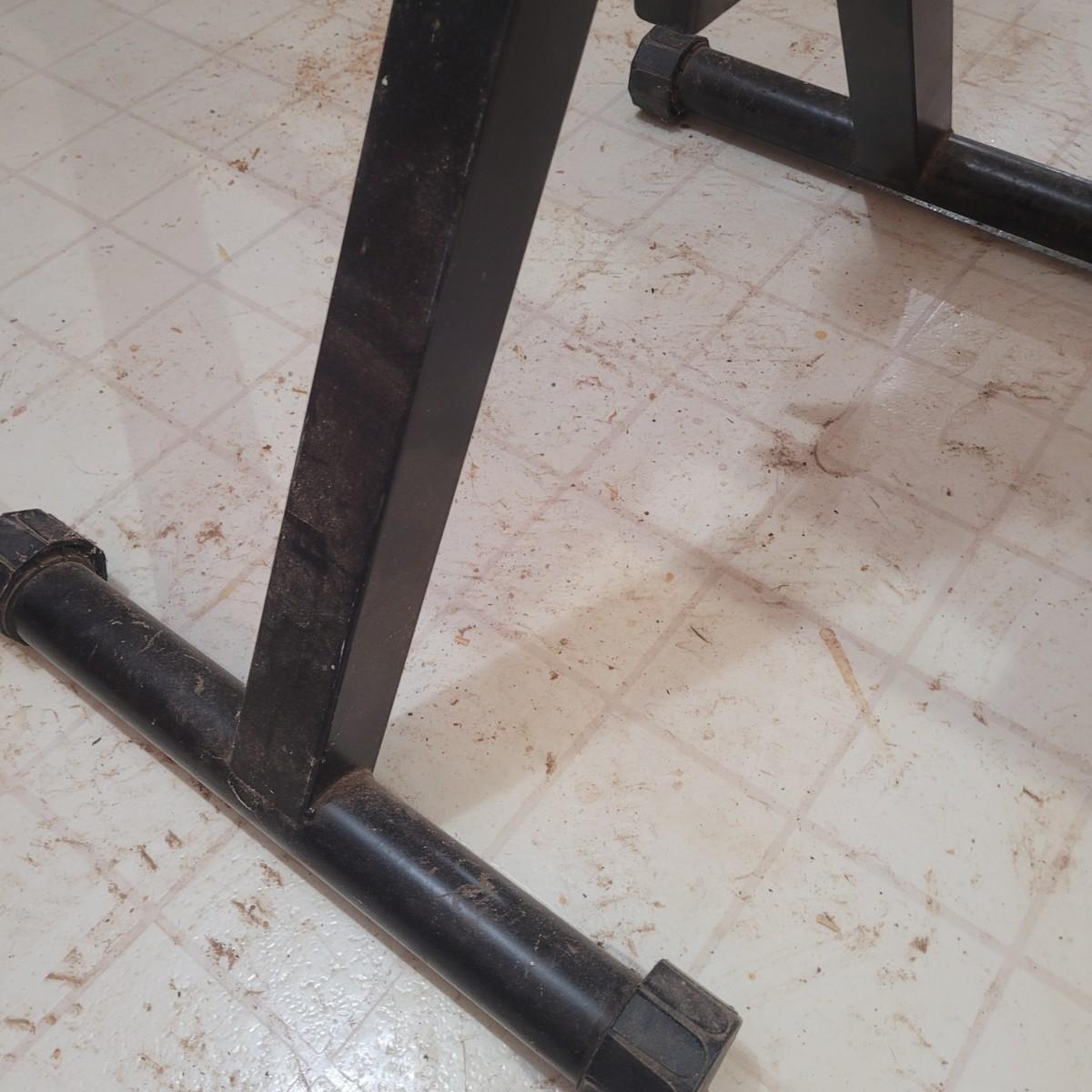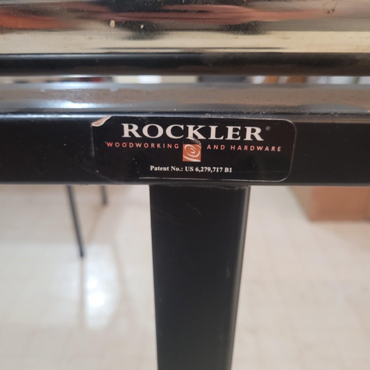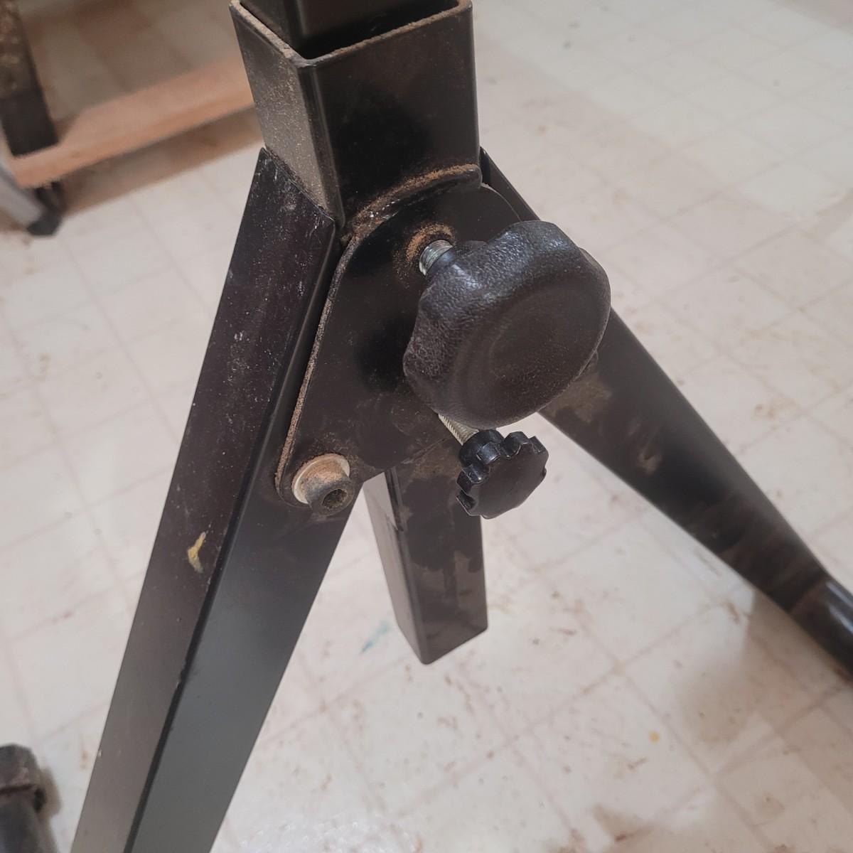 Rockler brand heavy duty foldable roller stand. Item measures 28" x 18" x 39". Height is adjustable. Made of metal with a few plastic components.