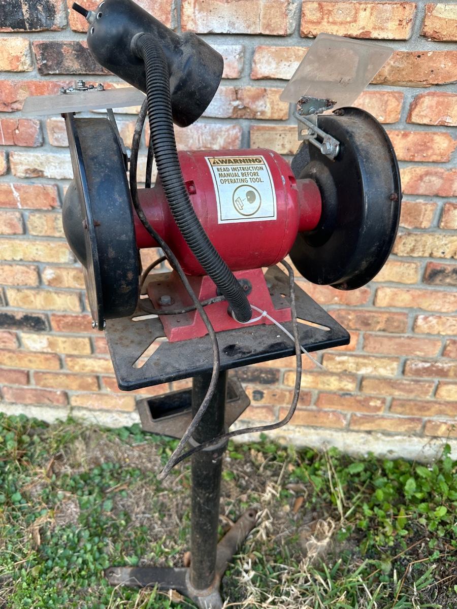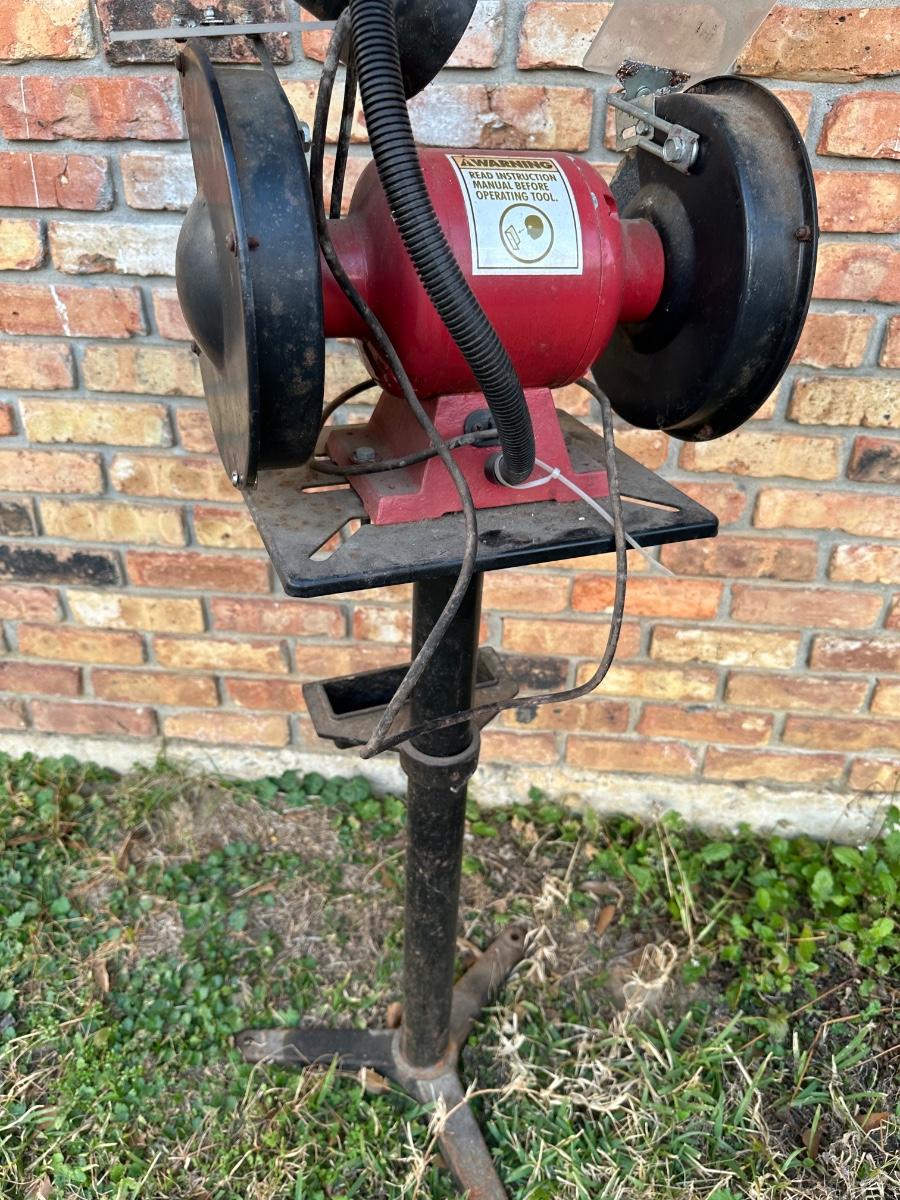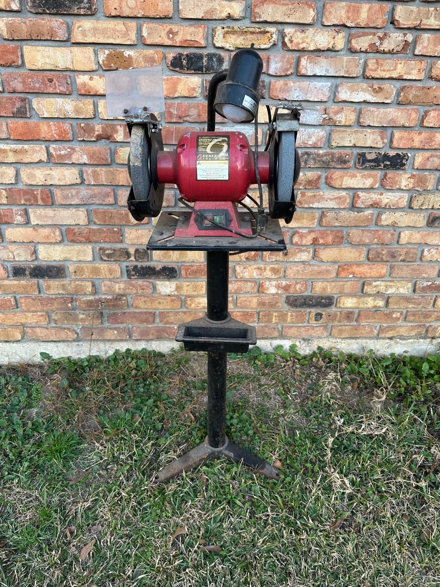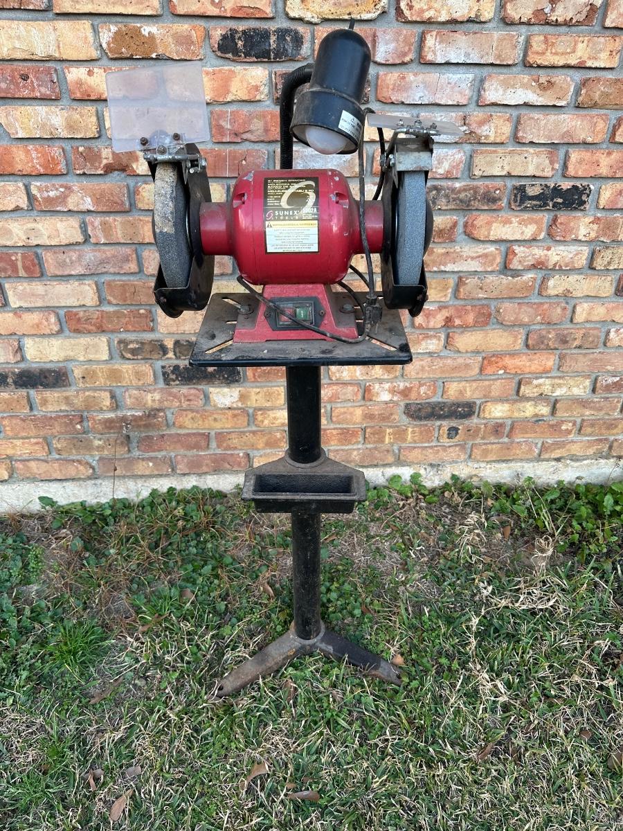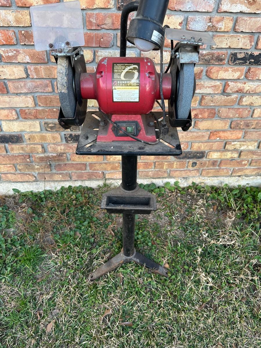 Heavy Duty Steel Bench Grinder Pedestal Stand w/ Sunex 8” Grinder – For Parts or Repair