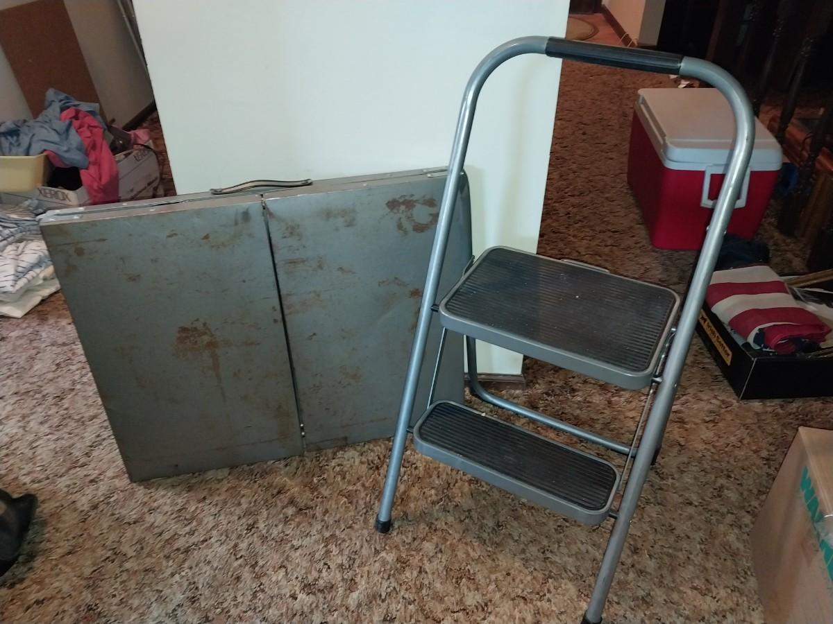 HEAVY DUTY STEP LADDER AND A METAL FOLDING TABLE