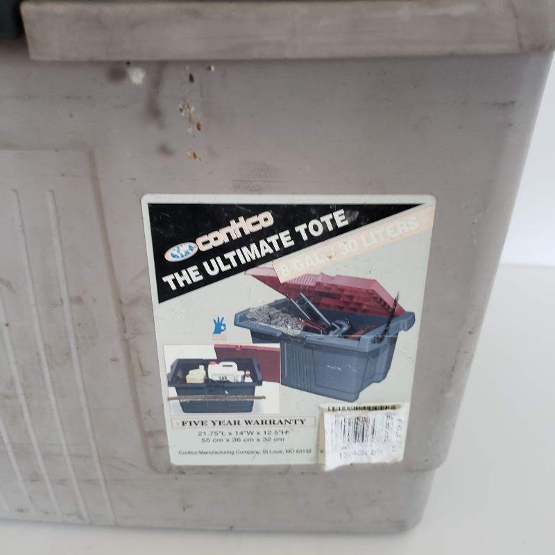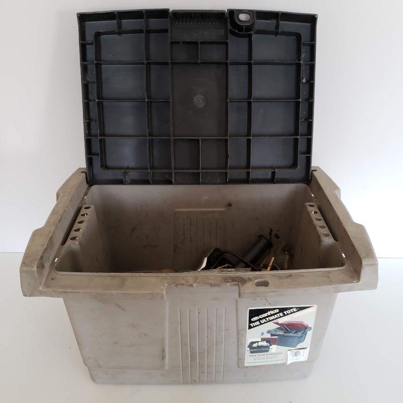 Heavy Duty Tote With Assorted Tools and Auto Parts