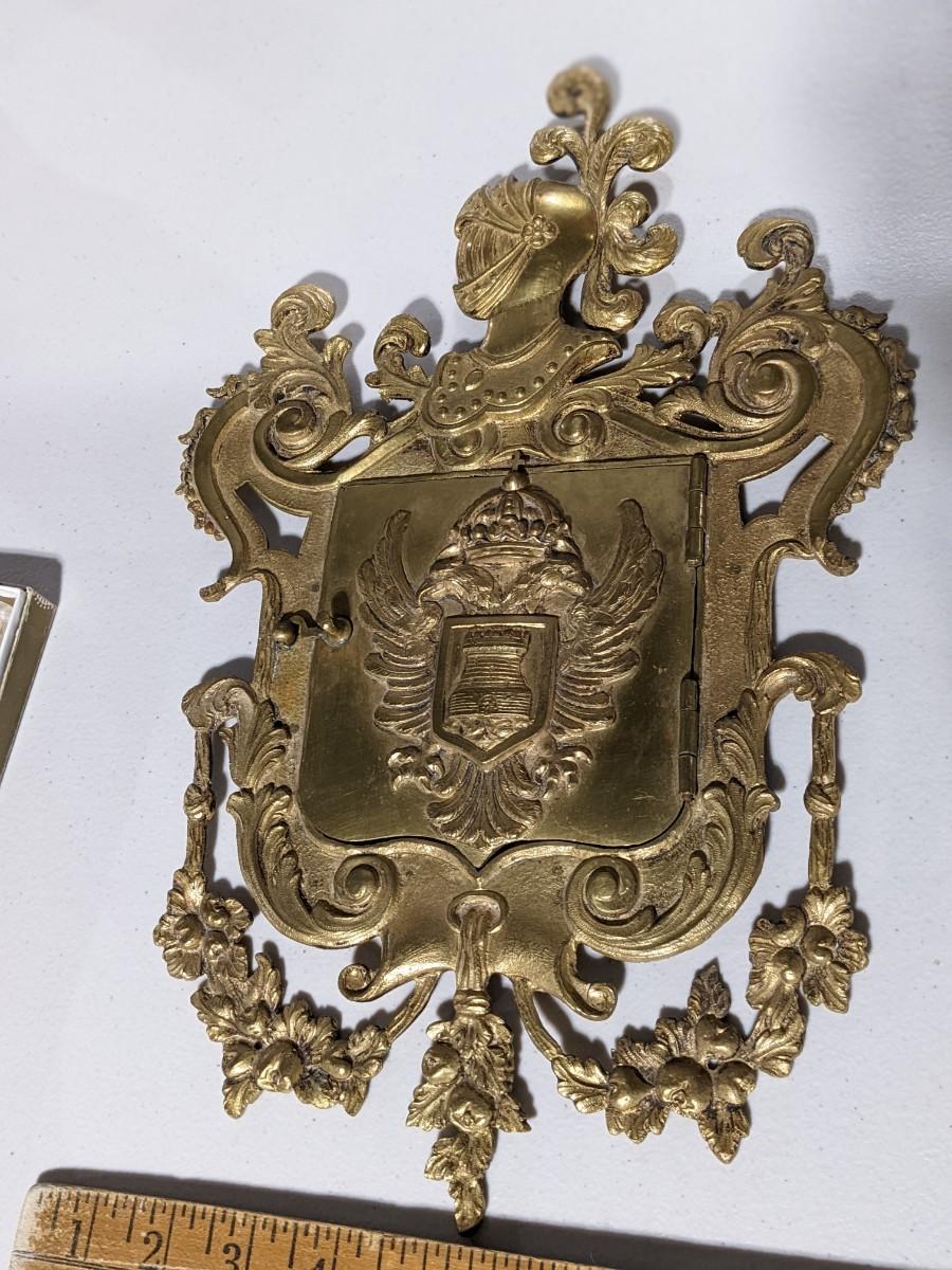 Heavy Duty Vintage Brass Coat of Arms Peephole and Door Knocker