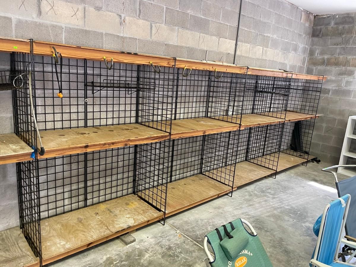 HD wall rack system, 18'L x 6'H x 2' deep , fastened to the wall, will break down easily.