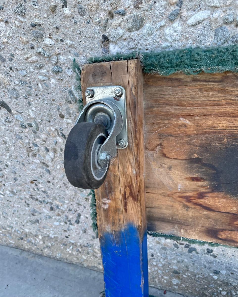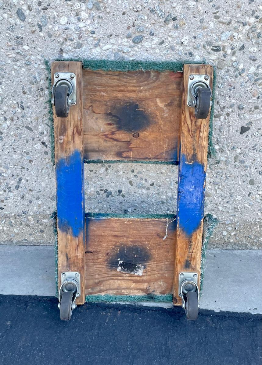 Wood Frame 4-Wheel Furniture Dolly With thick carpet padding. Approx size 19” x 32”.