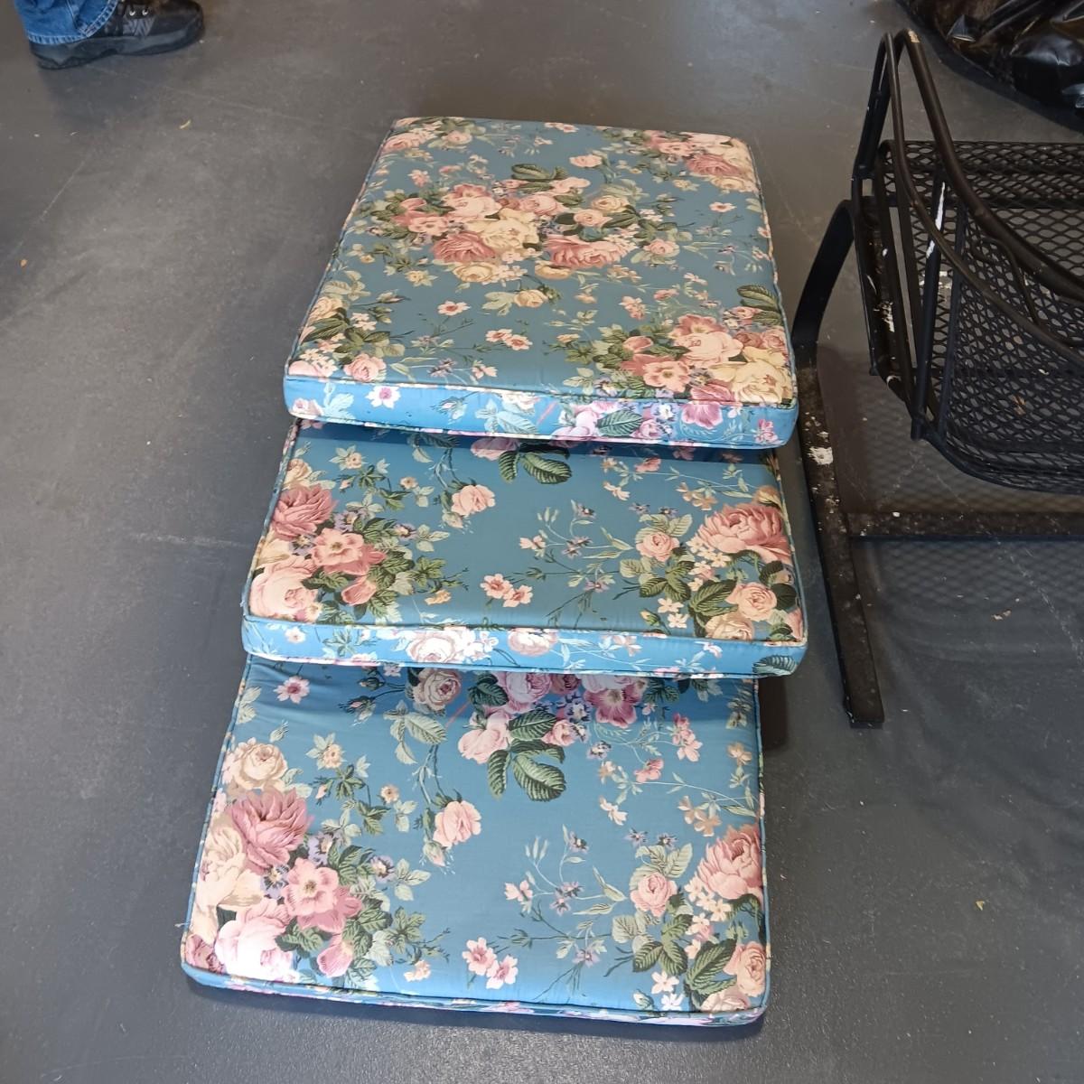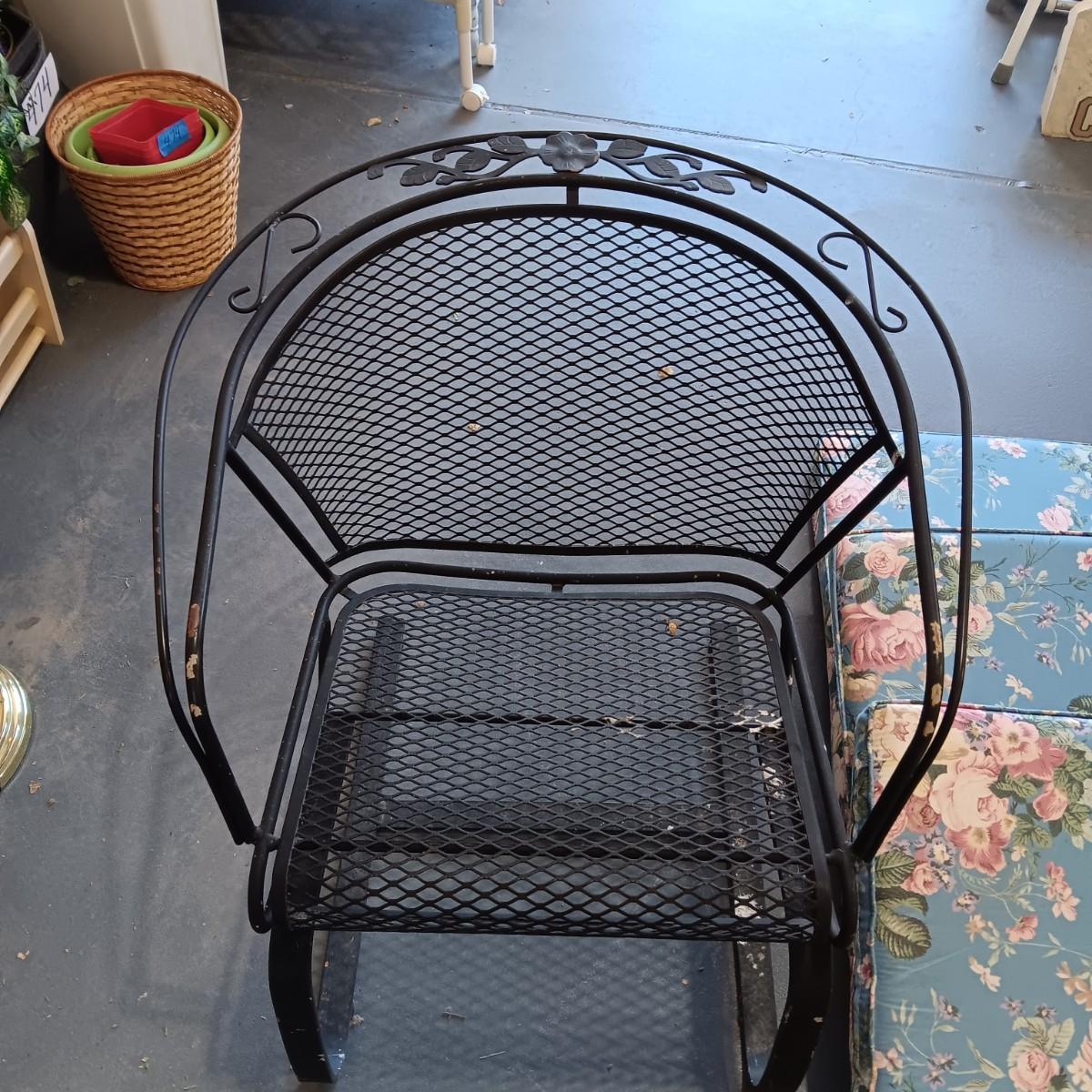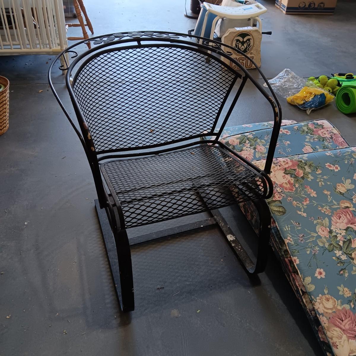 HEAVY DUTY WROUGHT IRON CHAIR AND 3 CUSHIONS