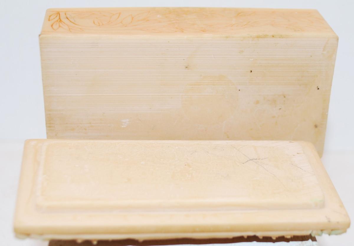 Heavy Engraved Flower Design Alabaster-Styled Trinket Box 3¾" x 1¾" x 1¼"