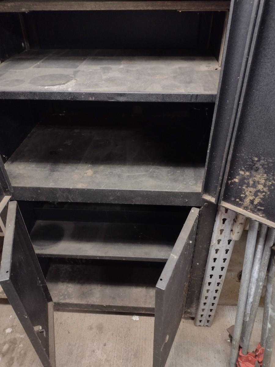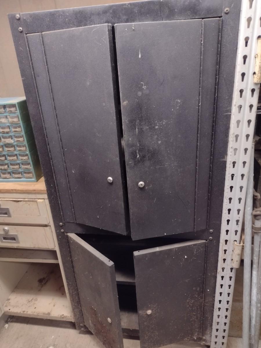 Heavy Gauge Metal Storage Cabinet. There is a tractor with forks that will be available for lifting this item onto a trailer if needed. No other lifting assistance is available.