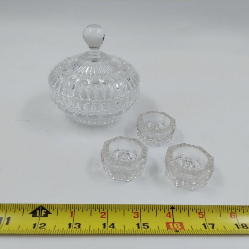 HEAVY GLASS CANDY DISH & SALT CELLARS