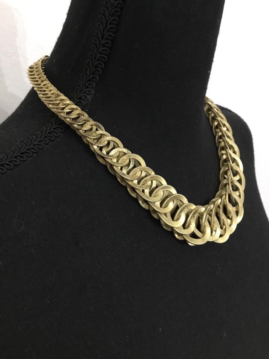 Heavy gold tone, mid century, chunky link, chain statement, necklace