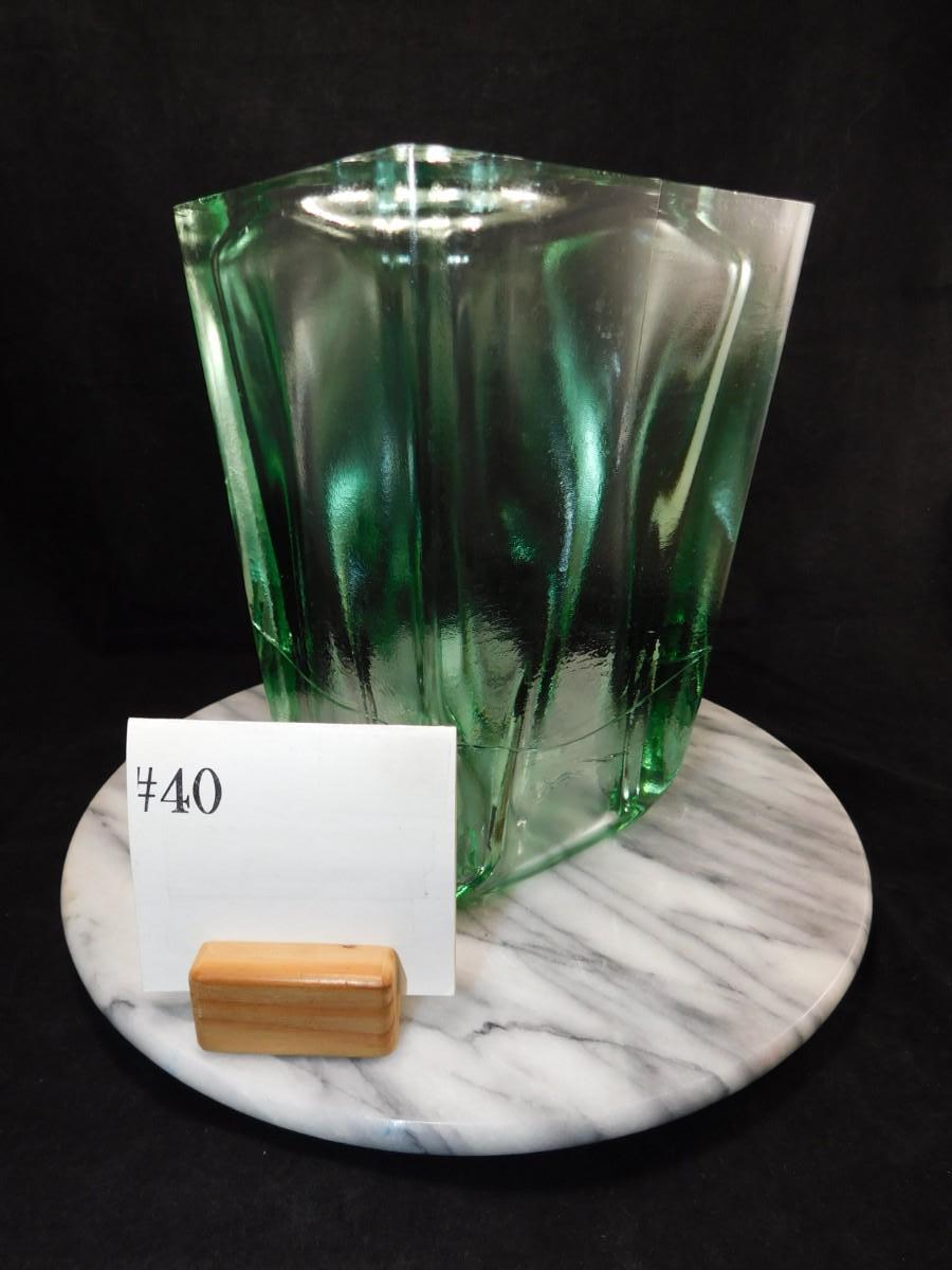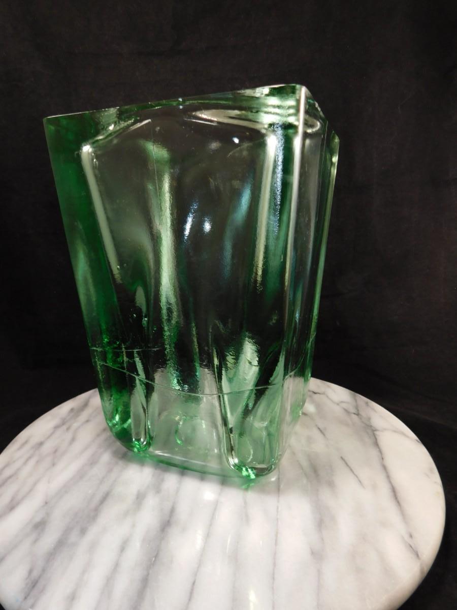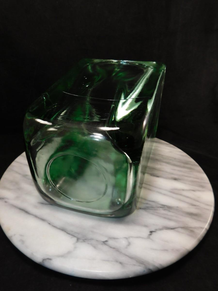 Heavy Green Recycled Glass Vase, Spain 8.75” Tall
