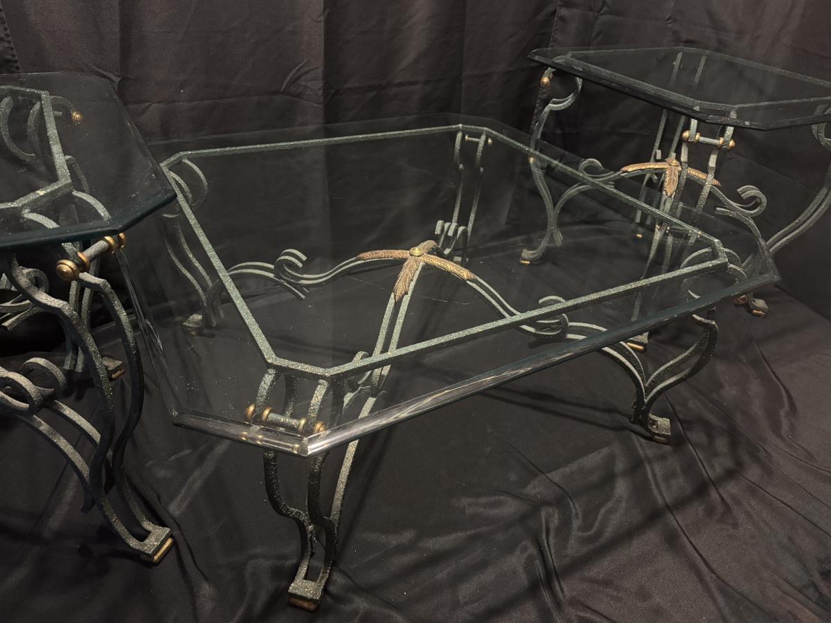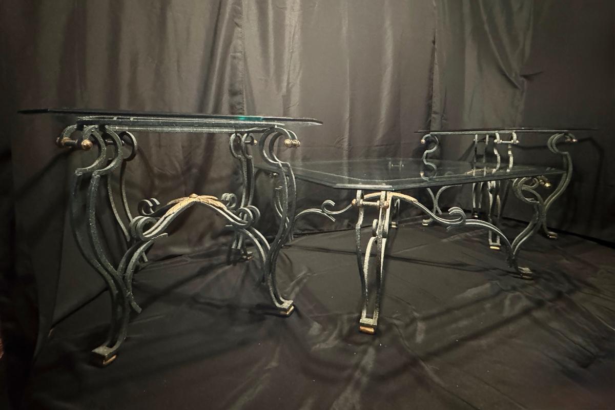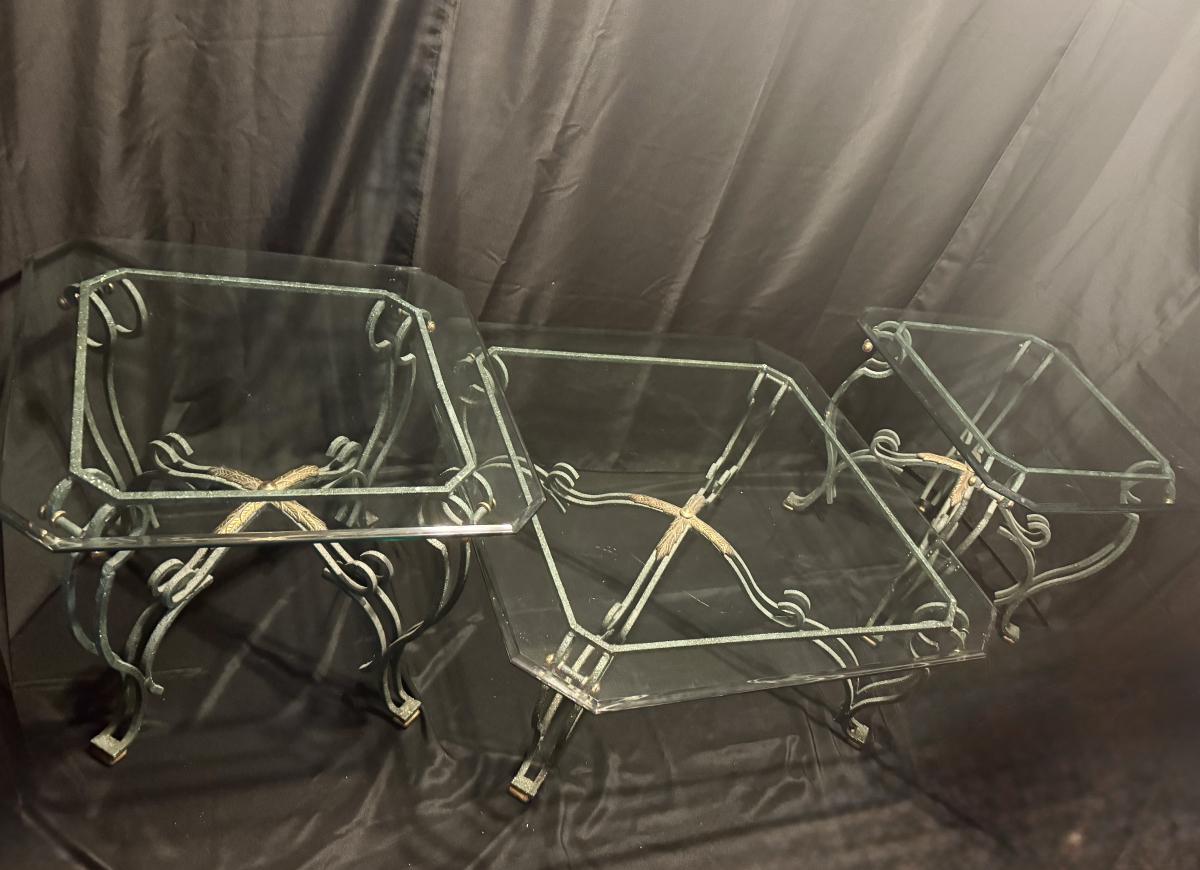 Heavy Iron Coffee Table & End Table Set with Thick Beveled Glass Tops