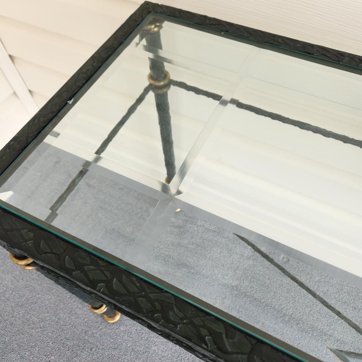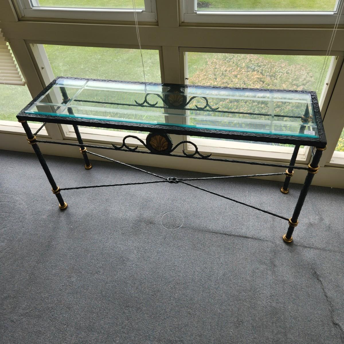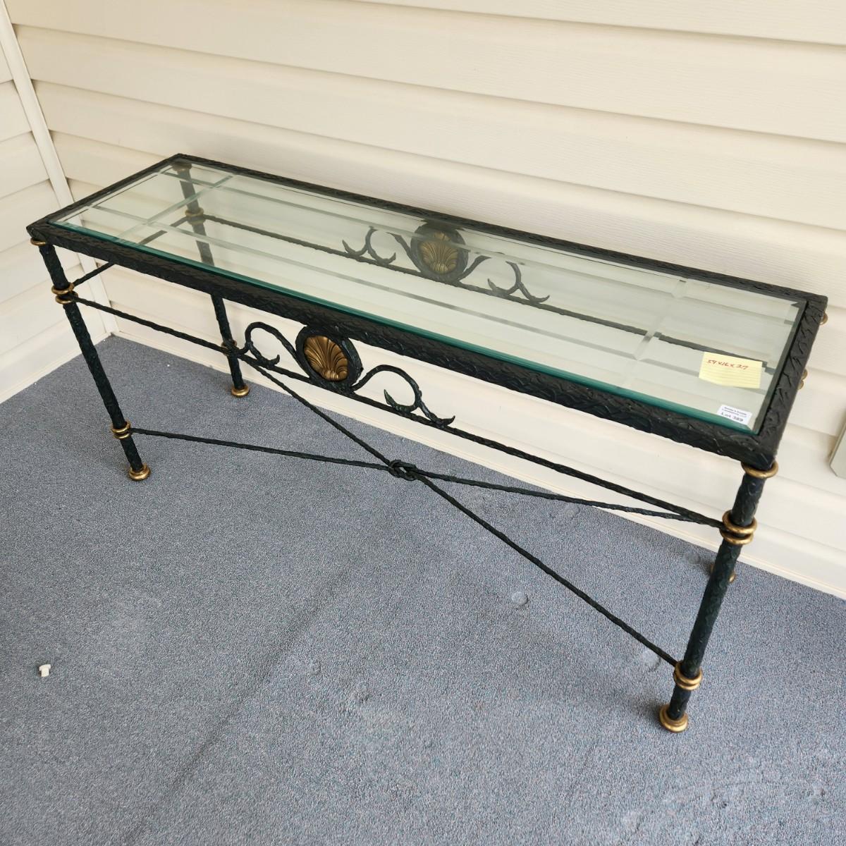 Heavy Metal & Beveled Glass Top Side Table 54x16x27