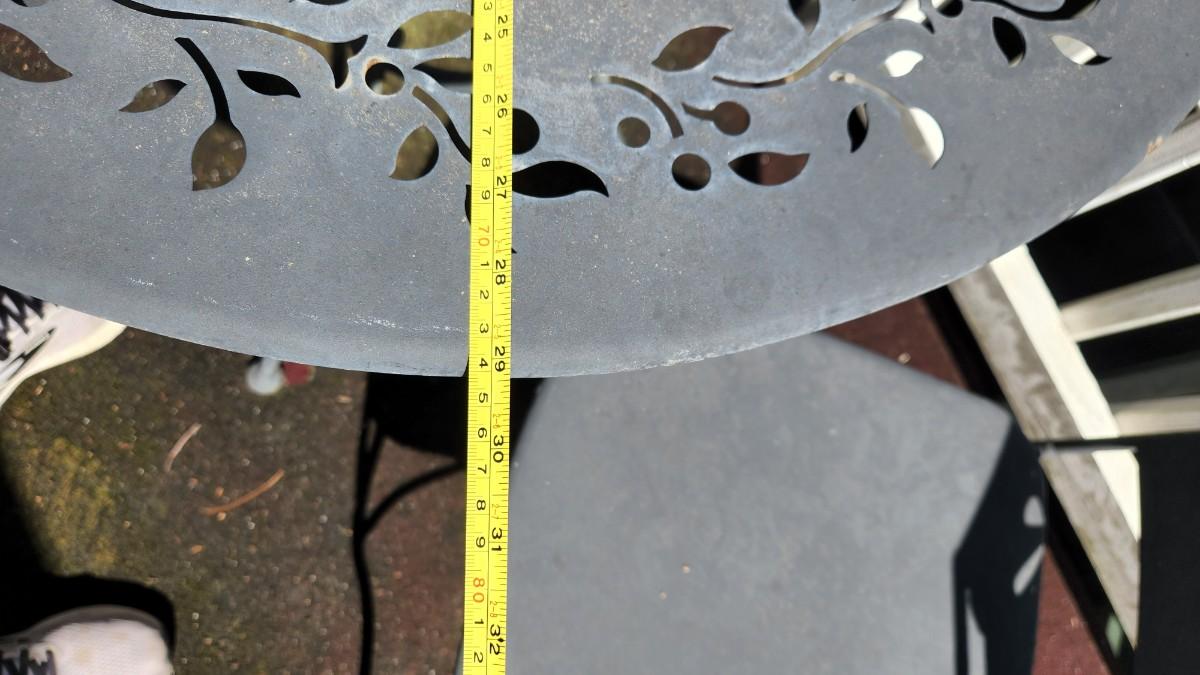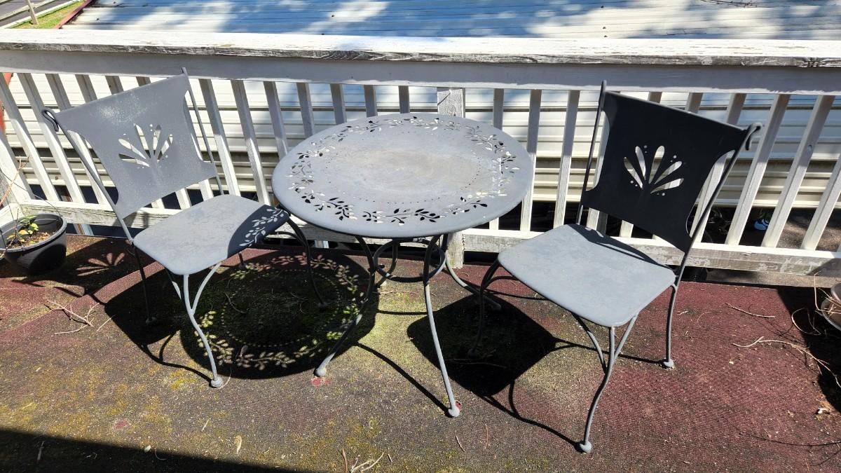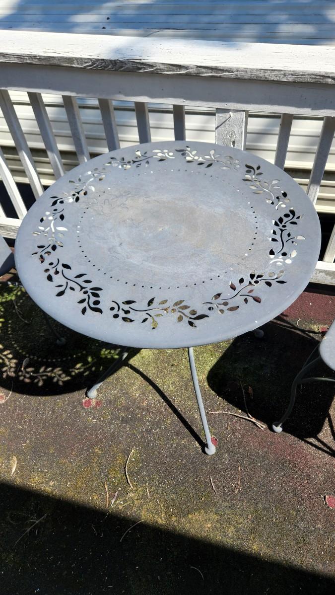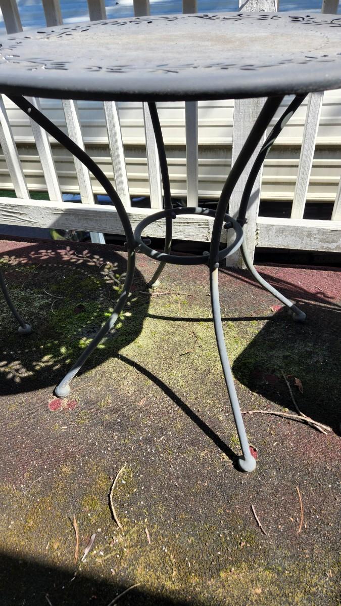 Heavy Metal Patio Table and 2 Chairs 29" dia table