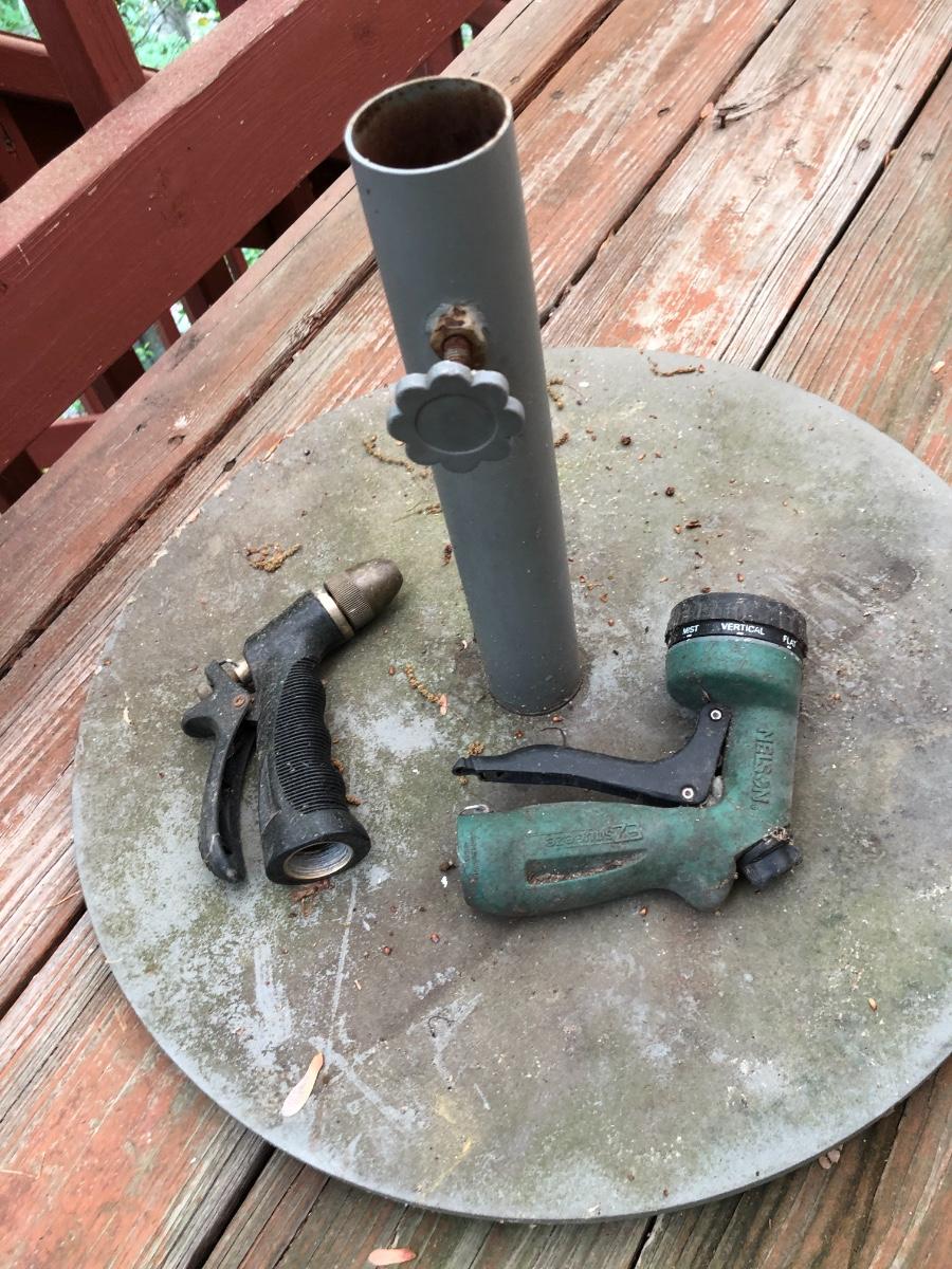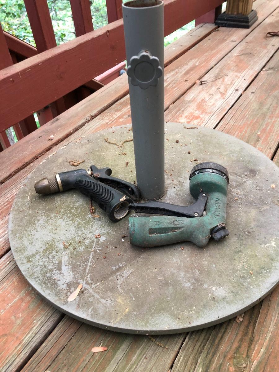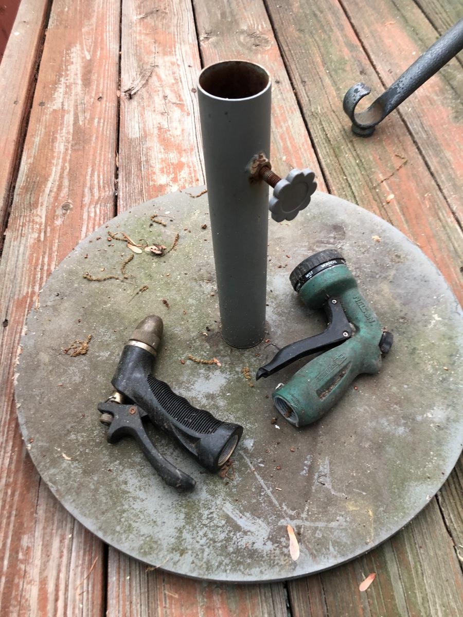 Heavy Metal Umbrella Stand and Two Hose Nozzles Untested -Lot 411