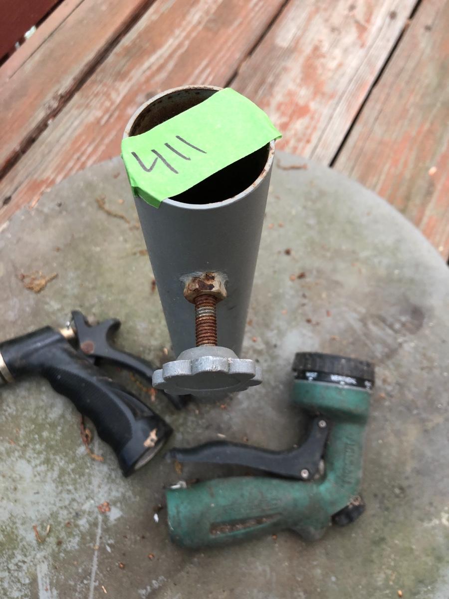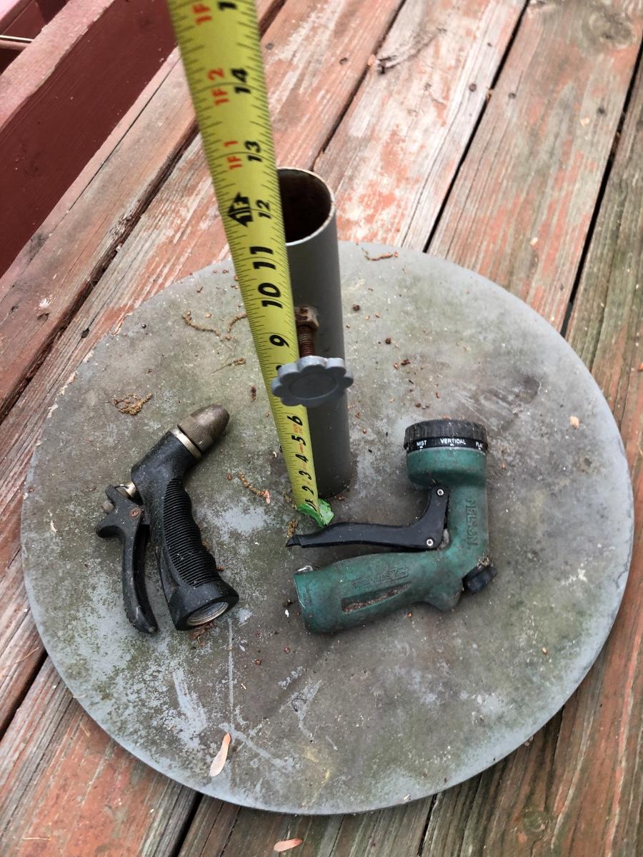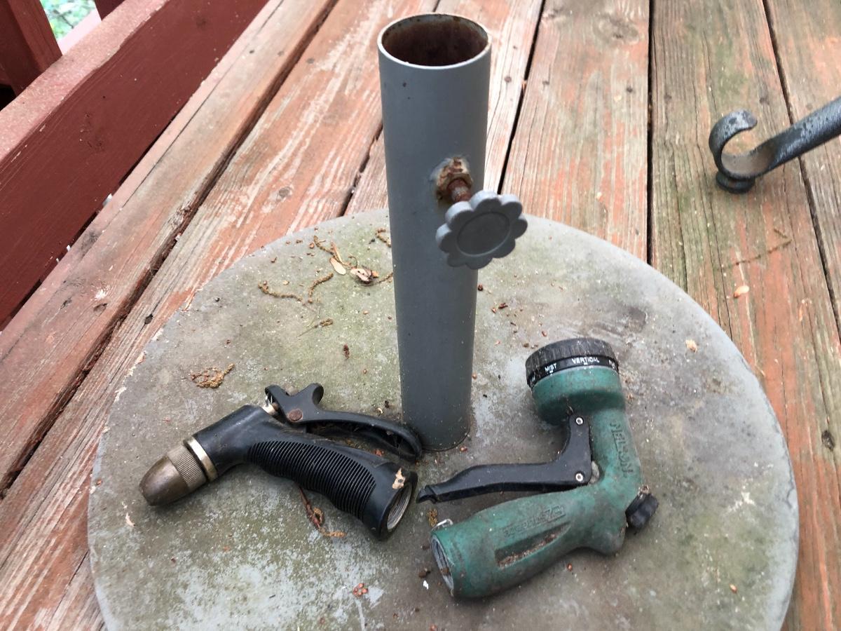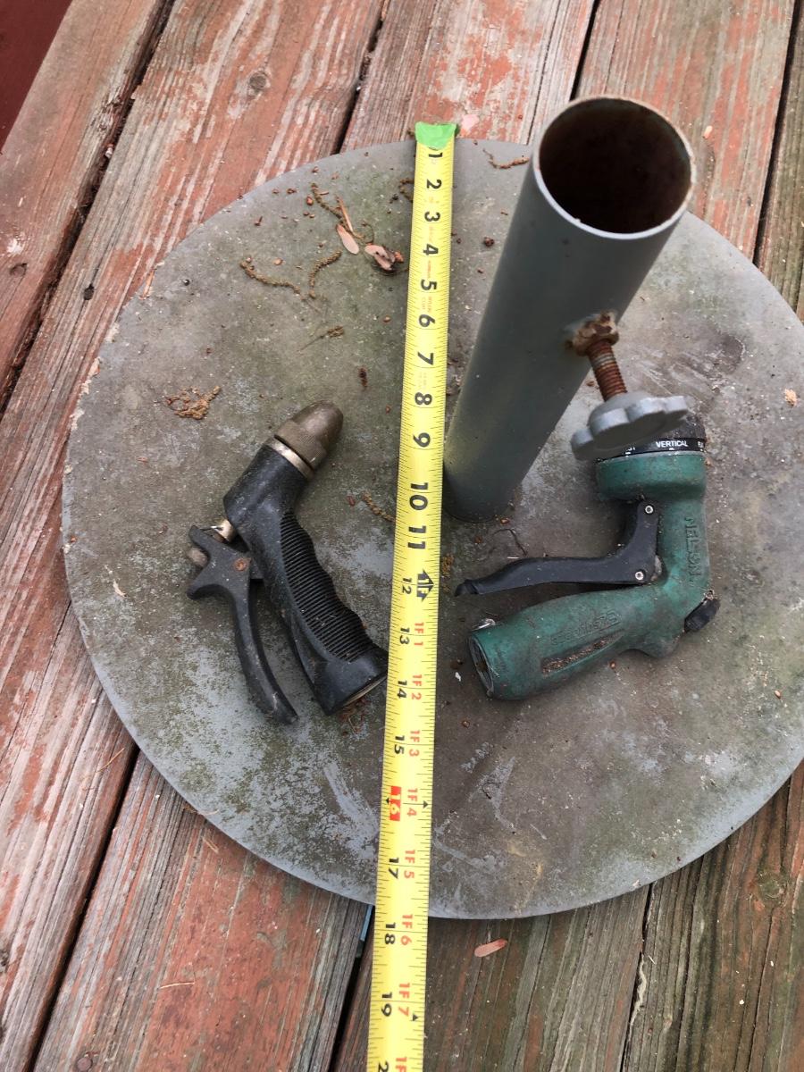 Heavy Metal Umbrella Stand and Two Hose Nozzles Untested -Lot 411