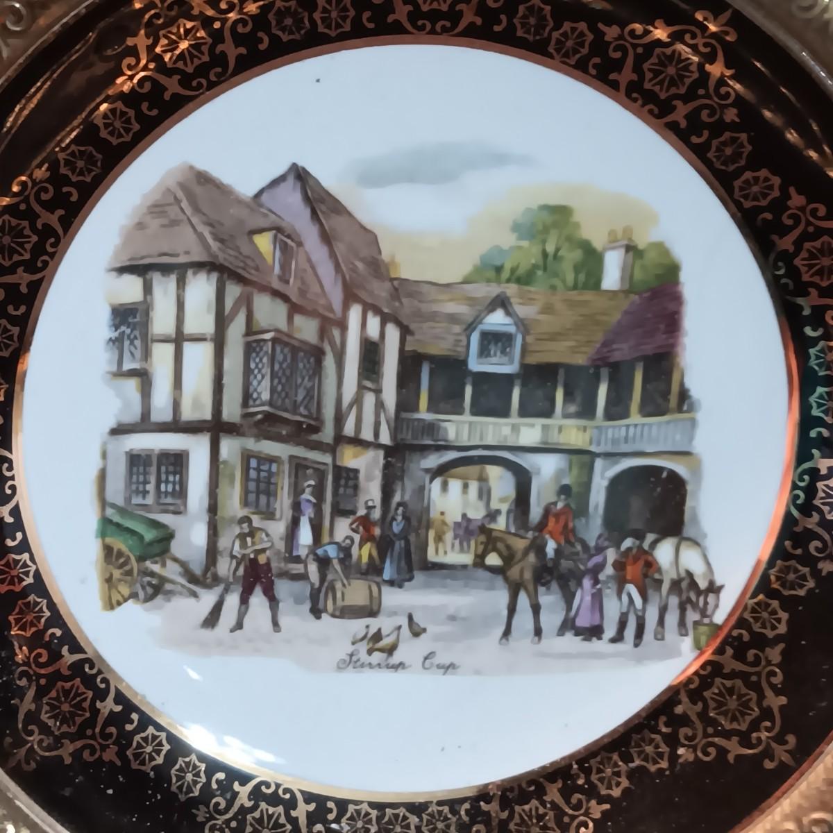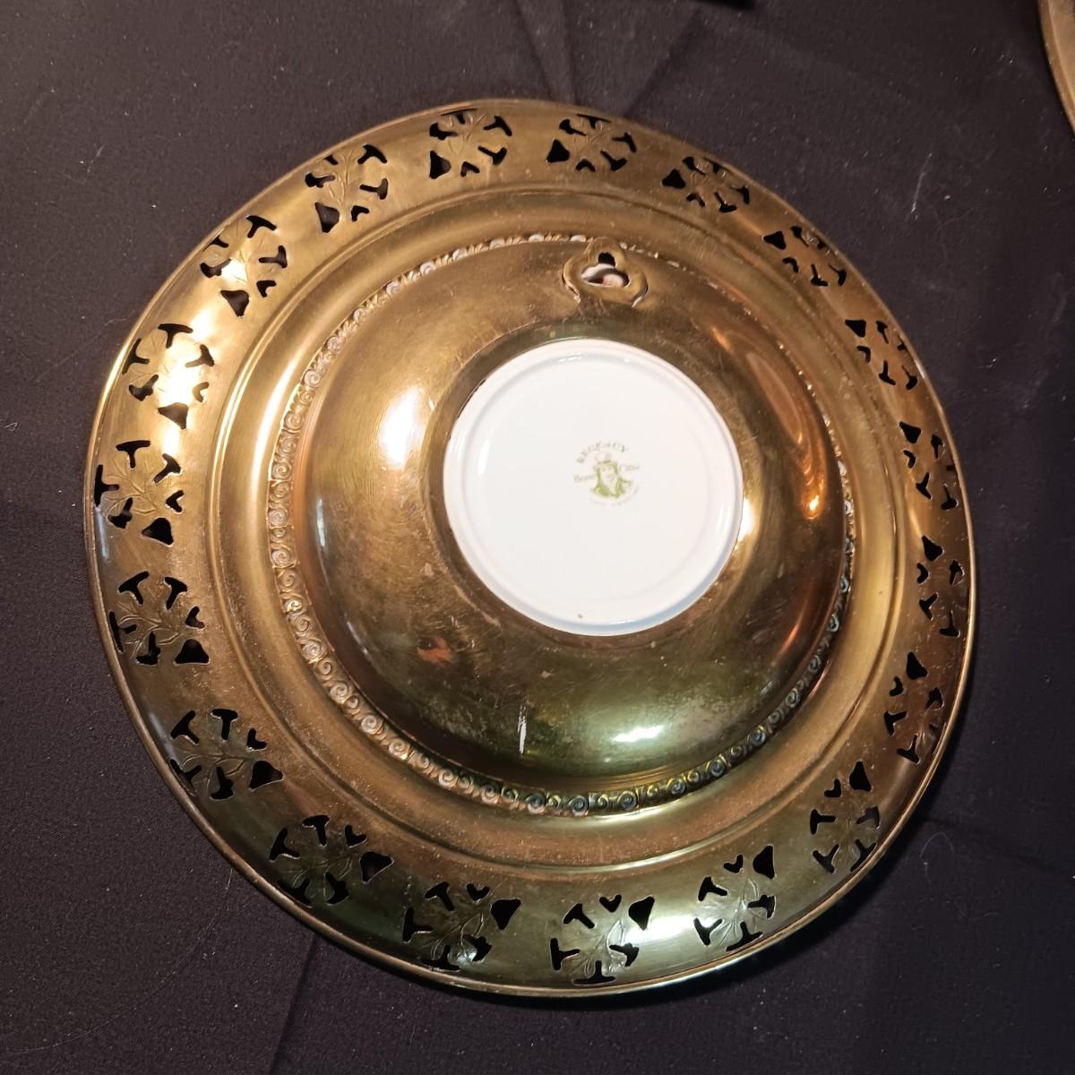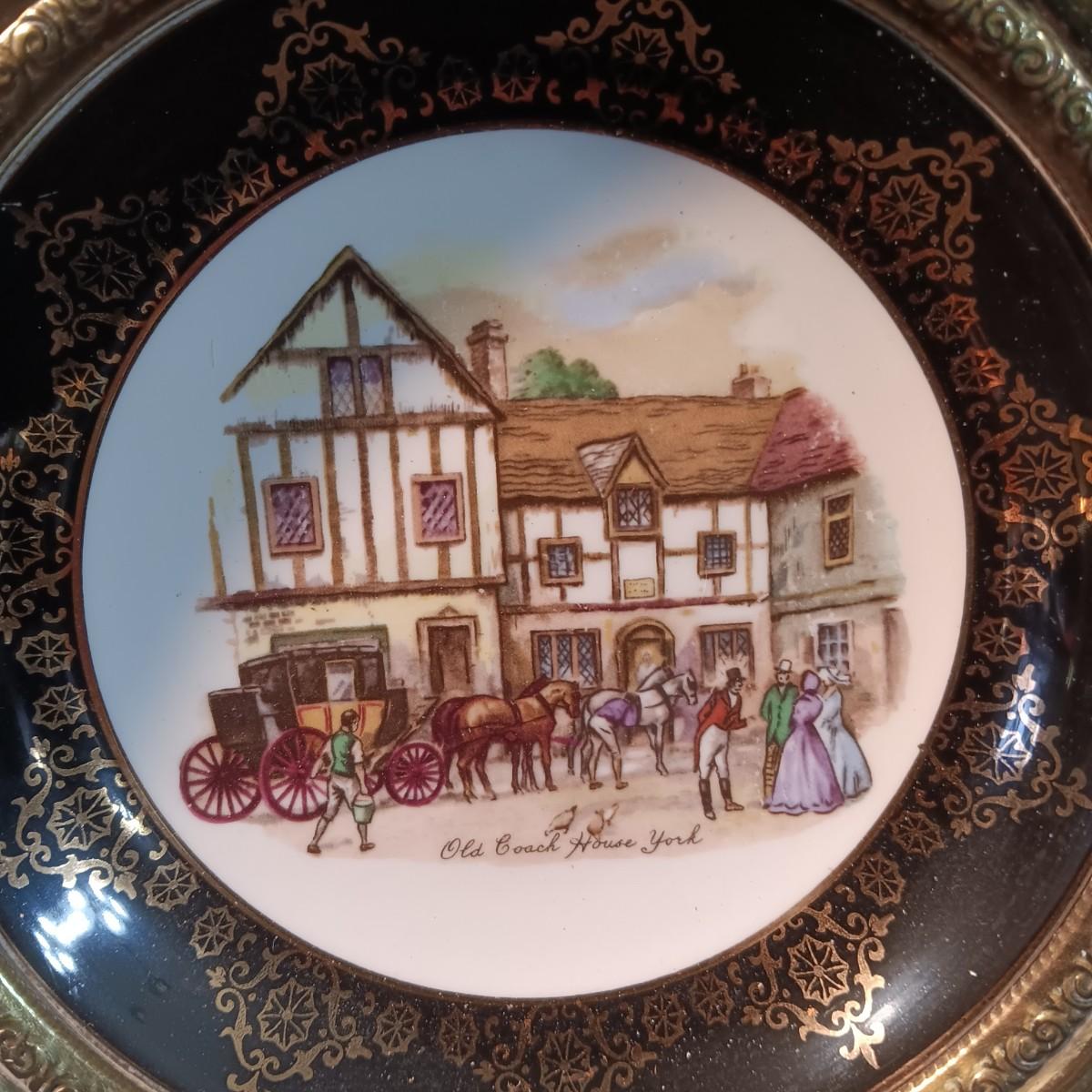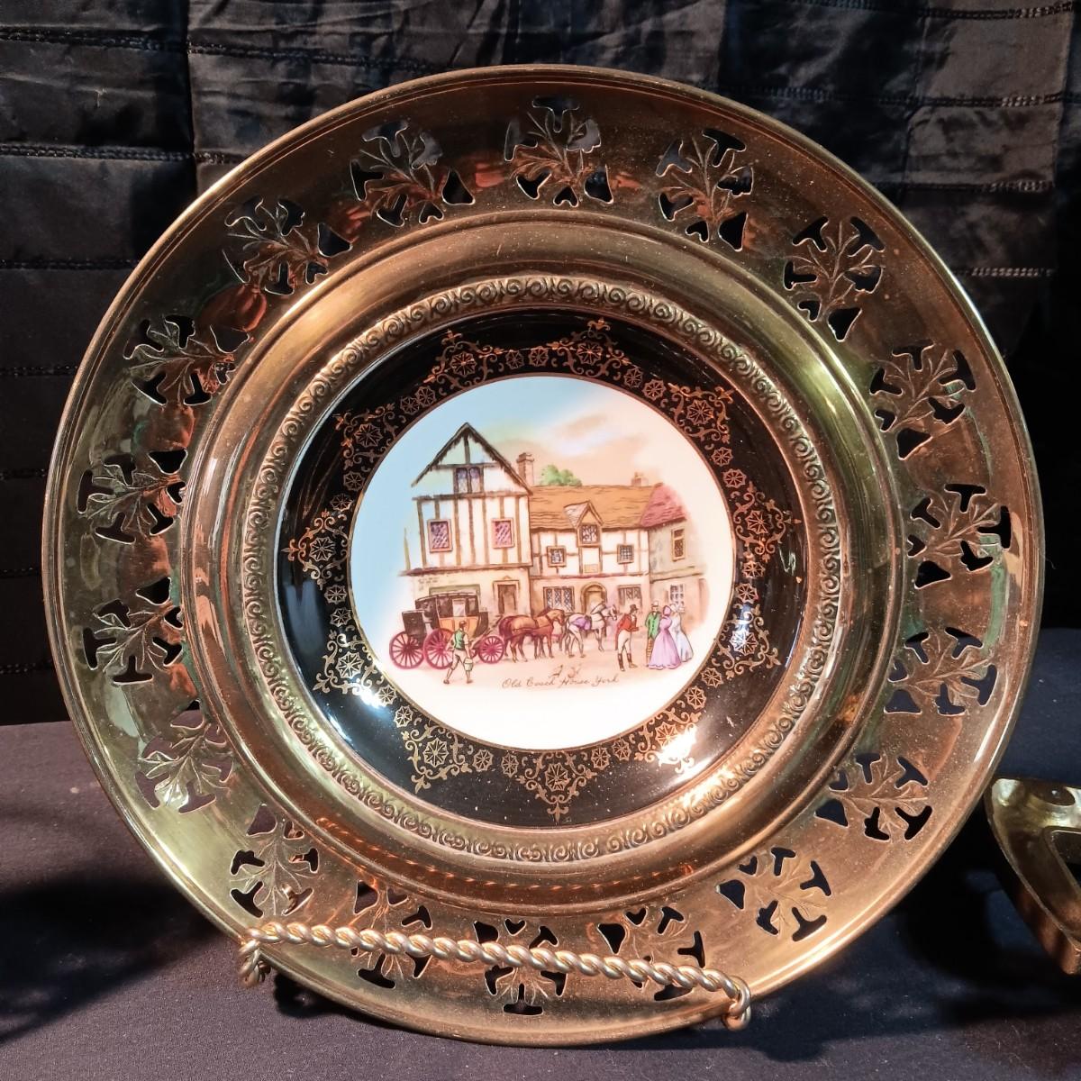 HEAVY METAL WALL HUNG CARRIAGE AND 2 REGENCY PLATES IN BRASS FRAME