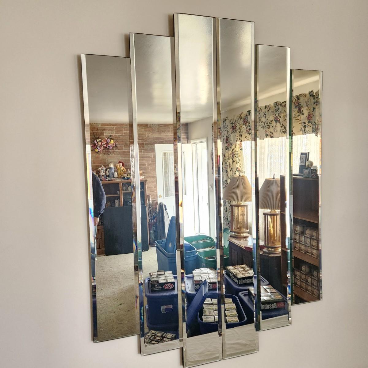 Heavy Mid Century MCM 6 Panel Mirror Beveled 48" x 35.5"