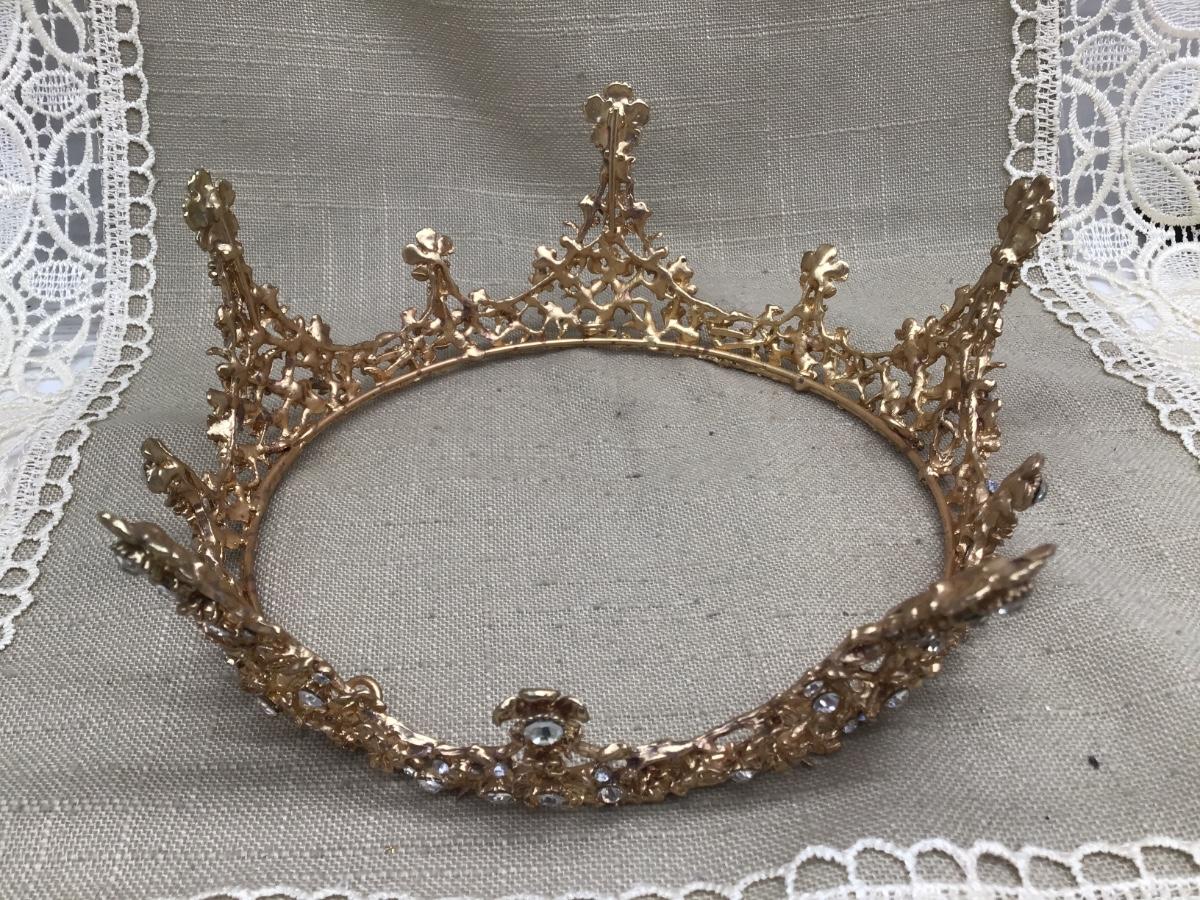 Heavy Nice GOLD TONE RHINESTONE PAGEANT TIARA CROWN
