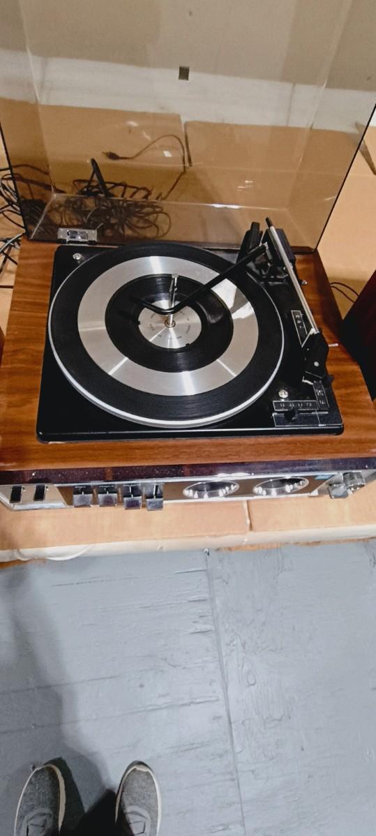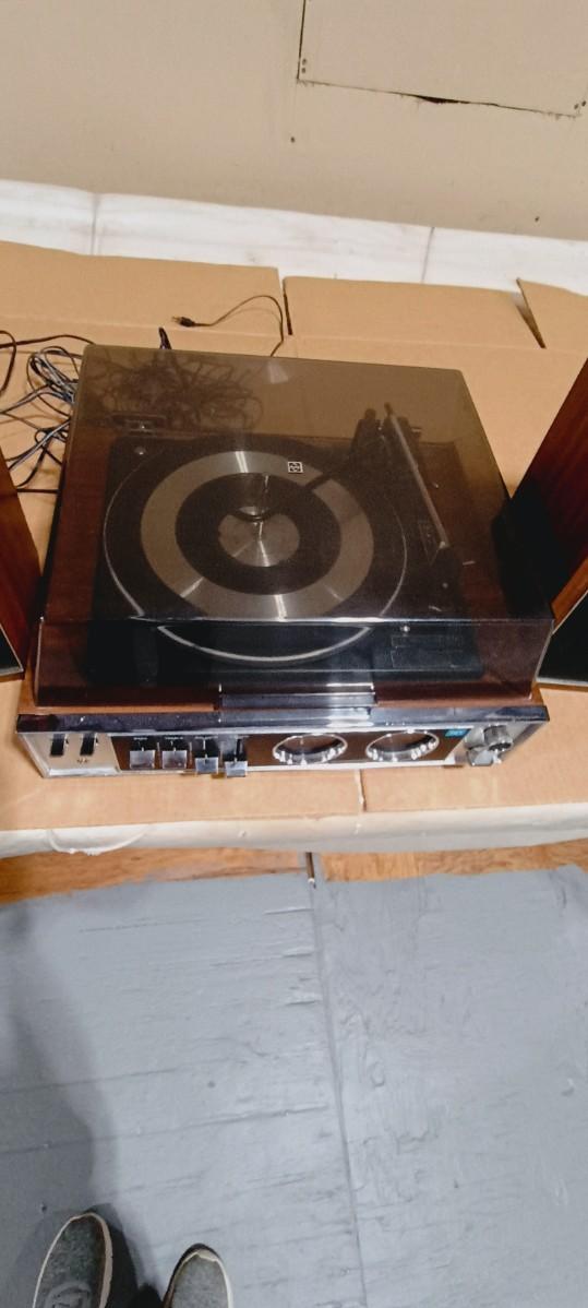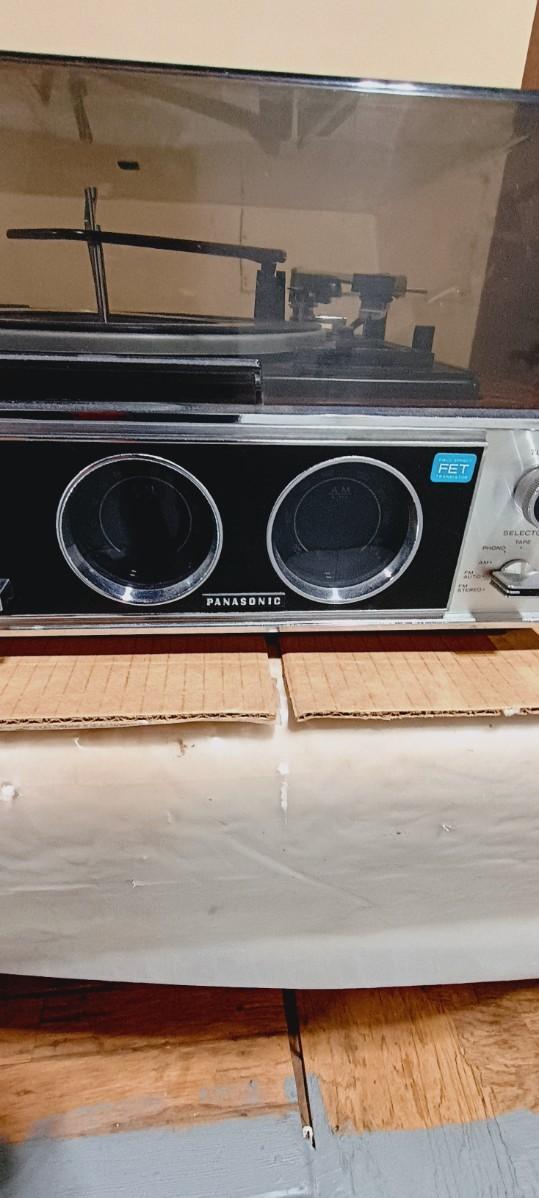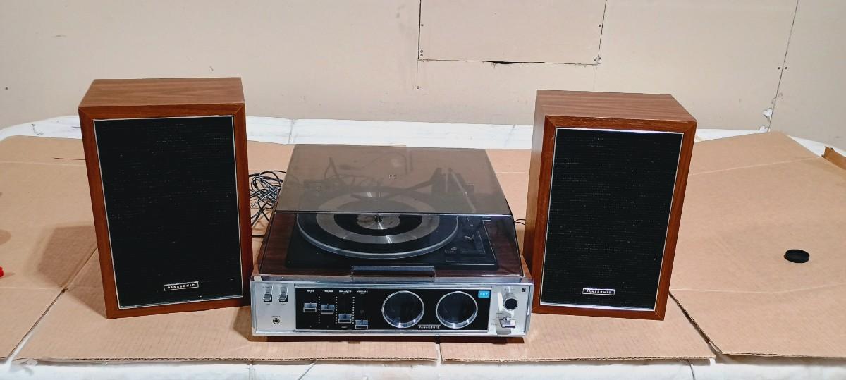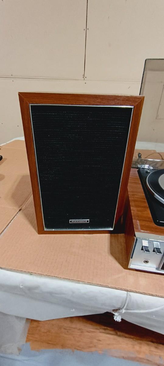 HEAVY PANASONIC PHONOGRAPH WITH SHELF SPEAKERS CRAFTED IN GREAT BRITAIN
