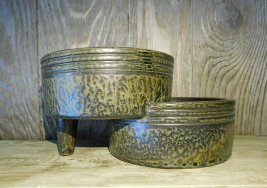 Heavy Pottery Double Vessel Vase for Cascading Arrangements