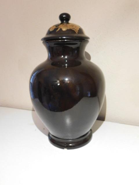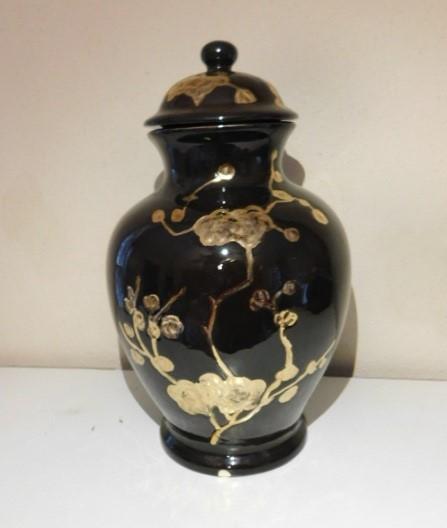 Heavy Pottery Painted 12" Tall Ginger Jar