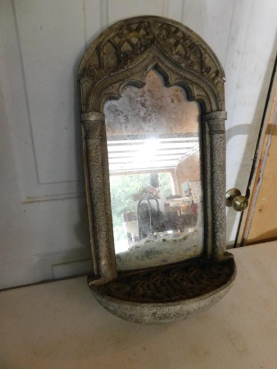 Heavy Resin Garden Wall Decor Mirror with Water Bath or Flower Pan