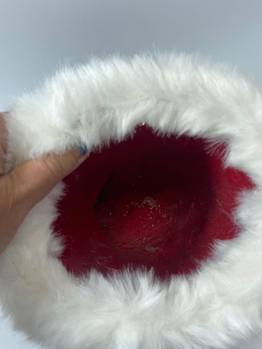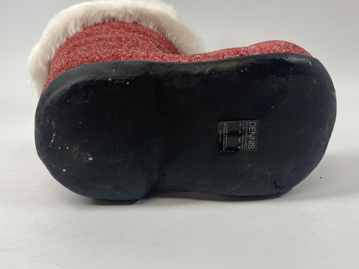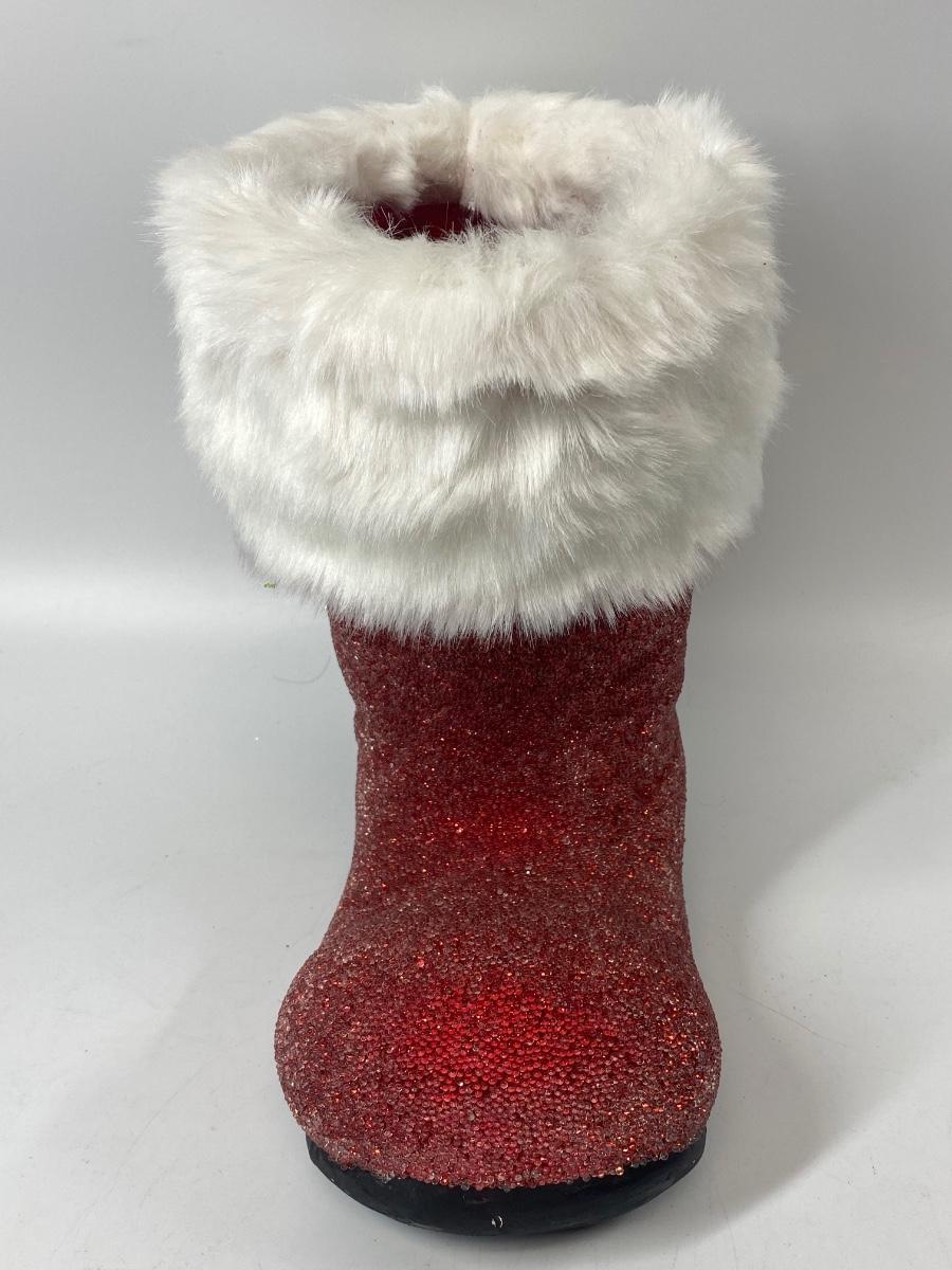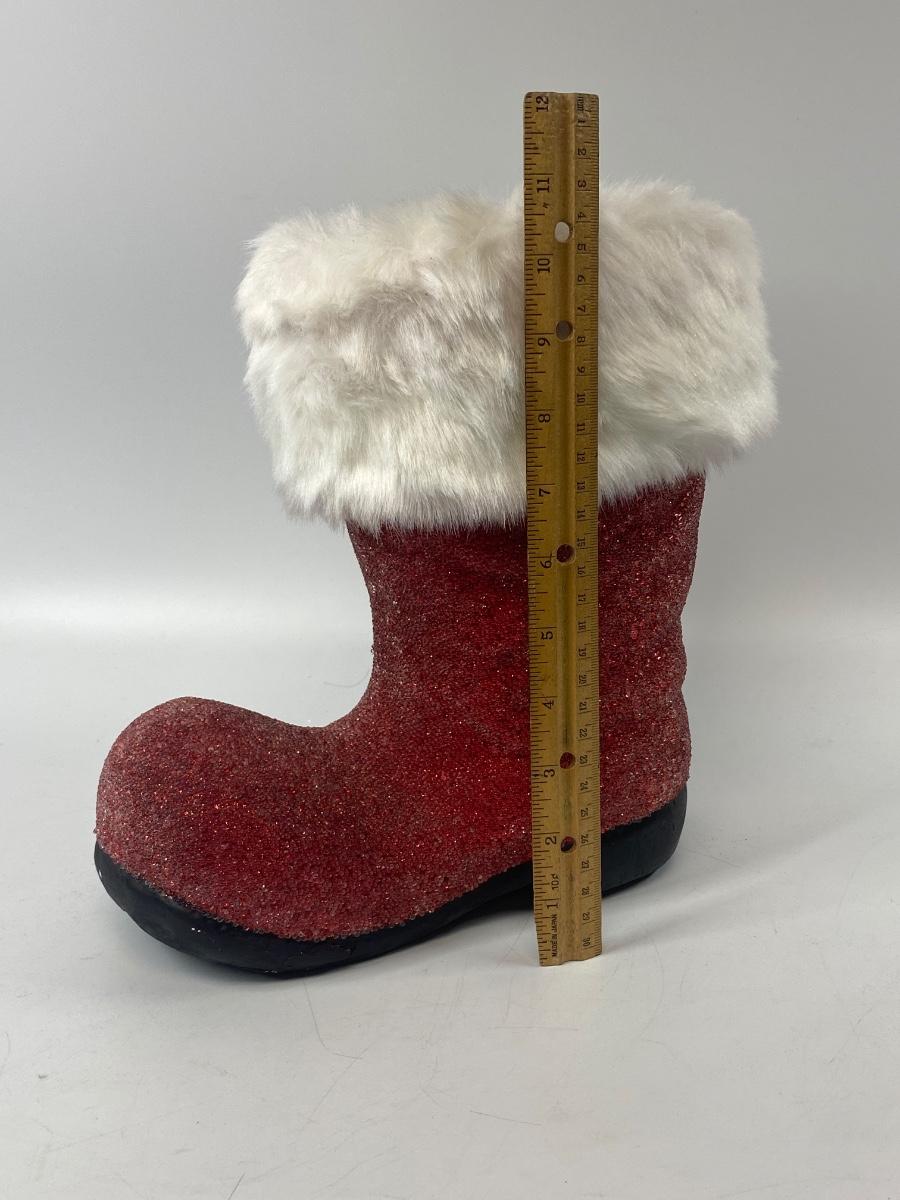 Heavy faux fur trimmed Santa boot. Could be used as a planter or a door stop, very heavy.