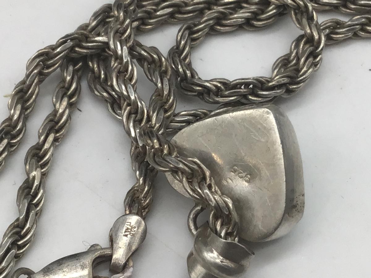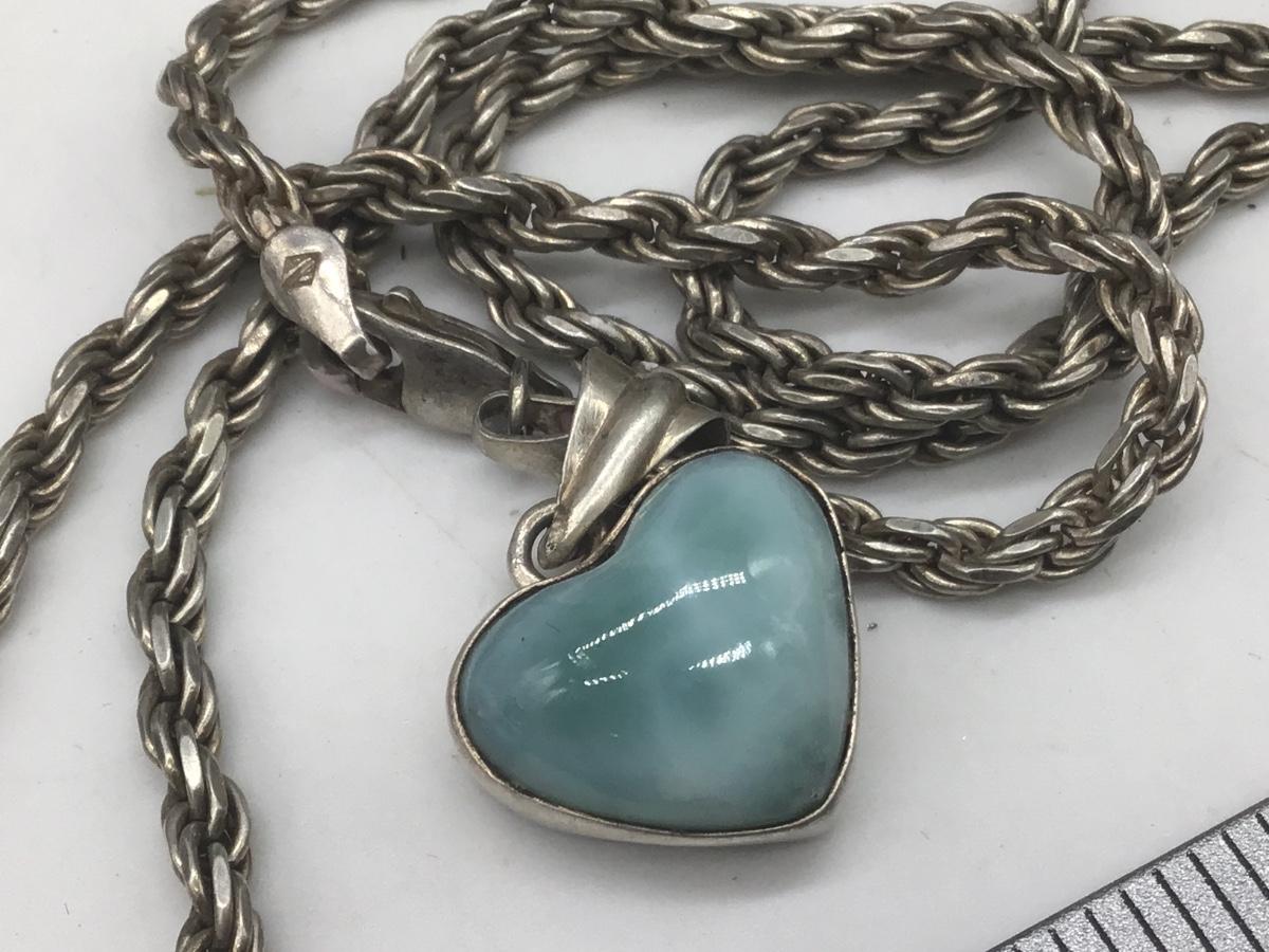 Heavy Silver 925 Chain With Stone Heart Pendant