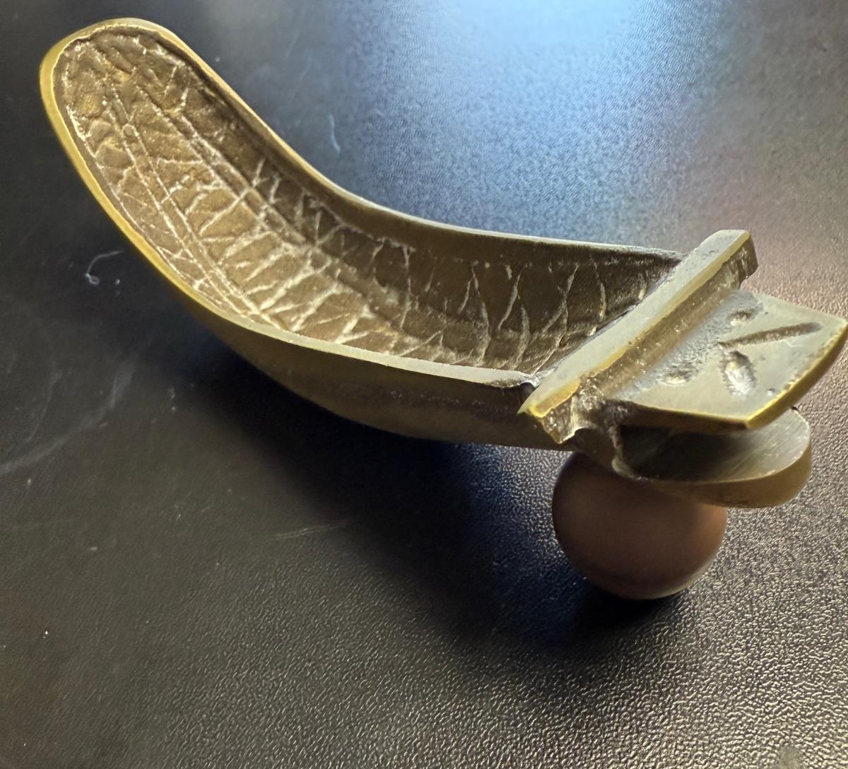 Vintage Basque Heavy Solid Brass Chistera Paperweight Jai-Alai