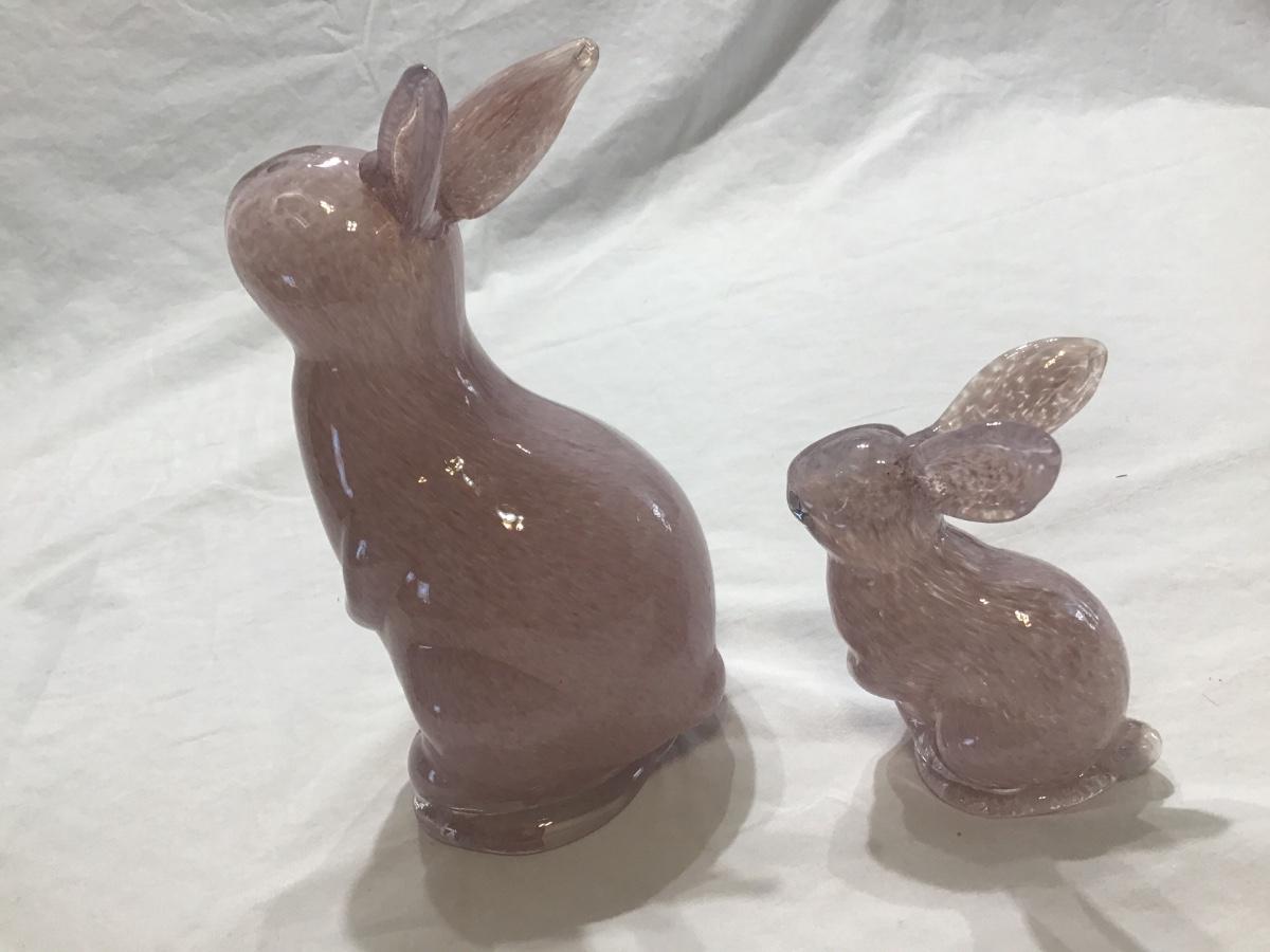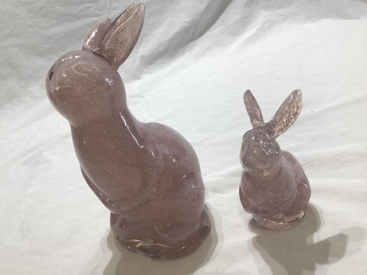 Heavy Solid Pink Glass Set of 2 Bunnies °