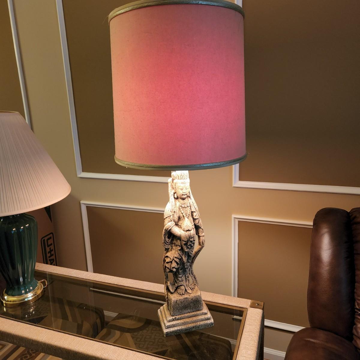 Mid Century Tall Asian Figural Table Lamp  37" to top of Shade