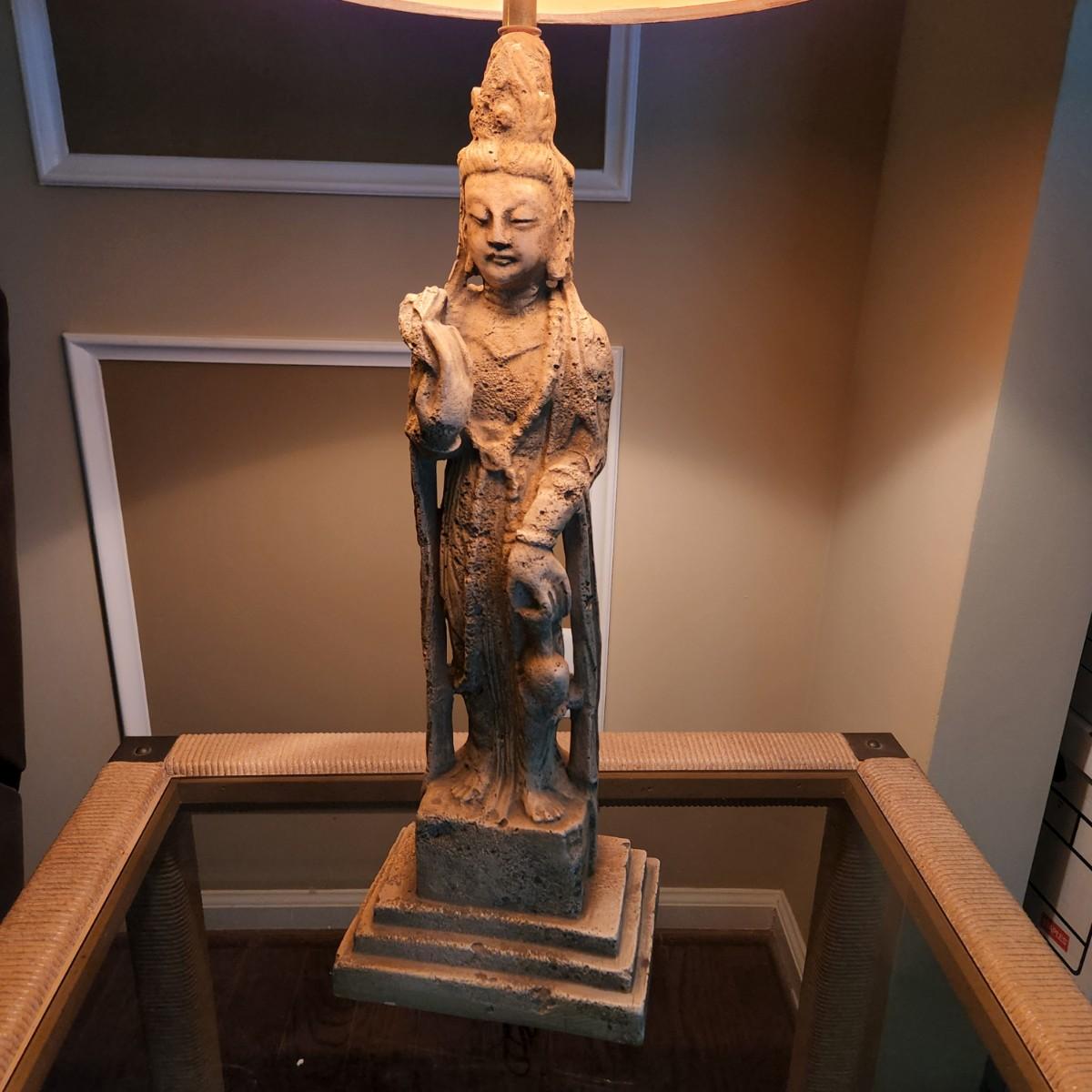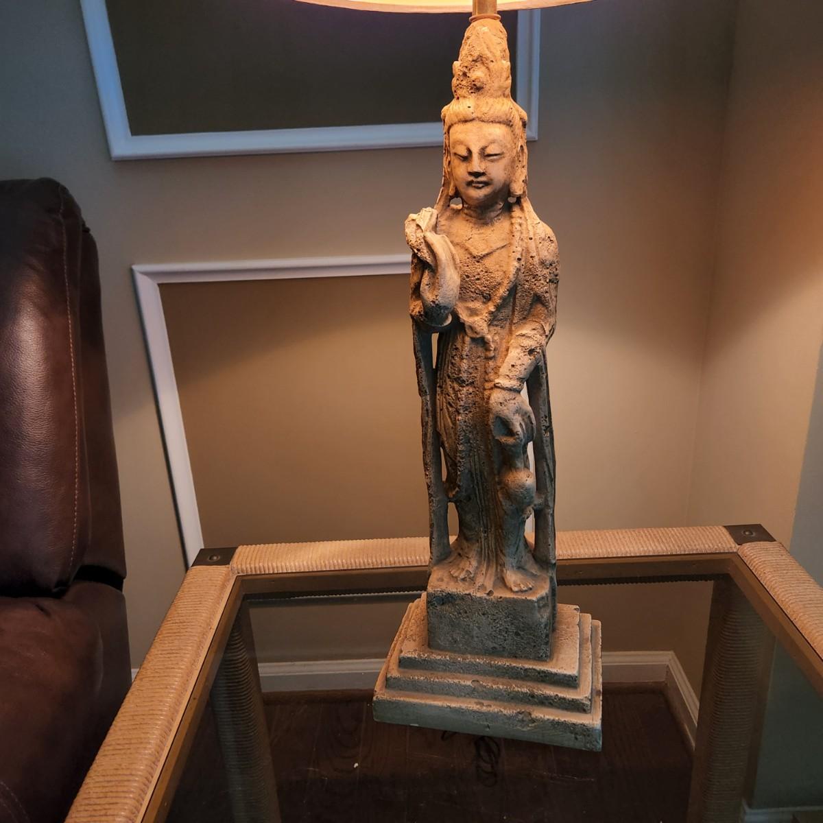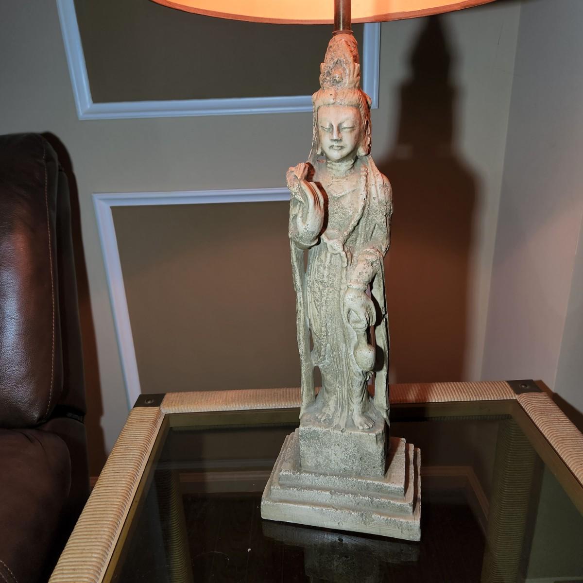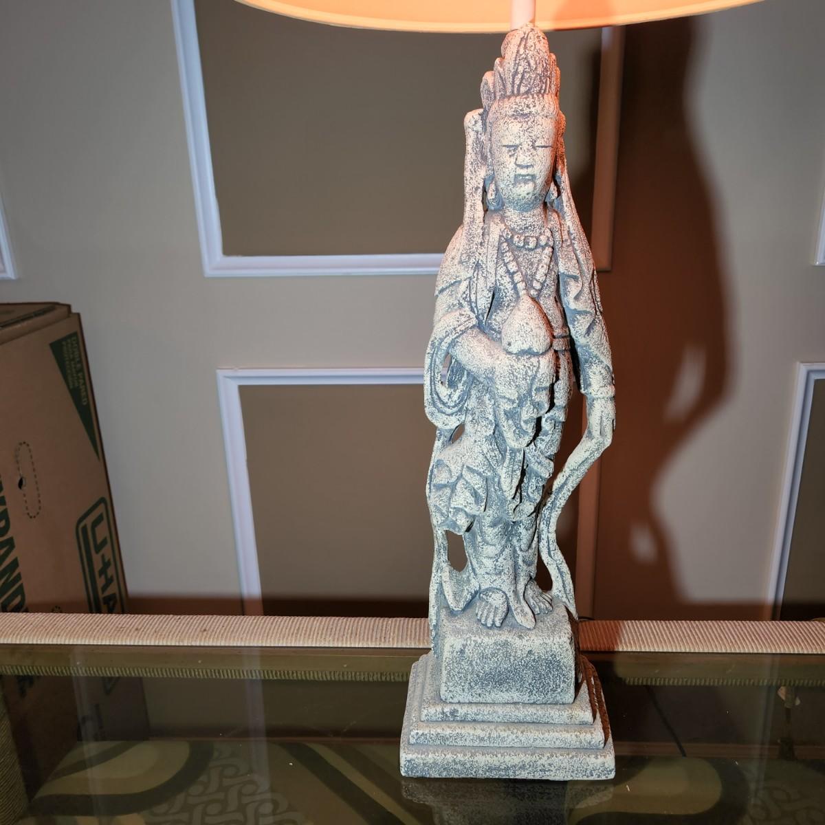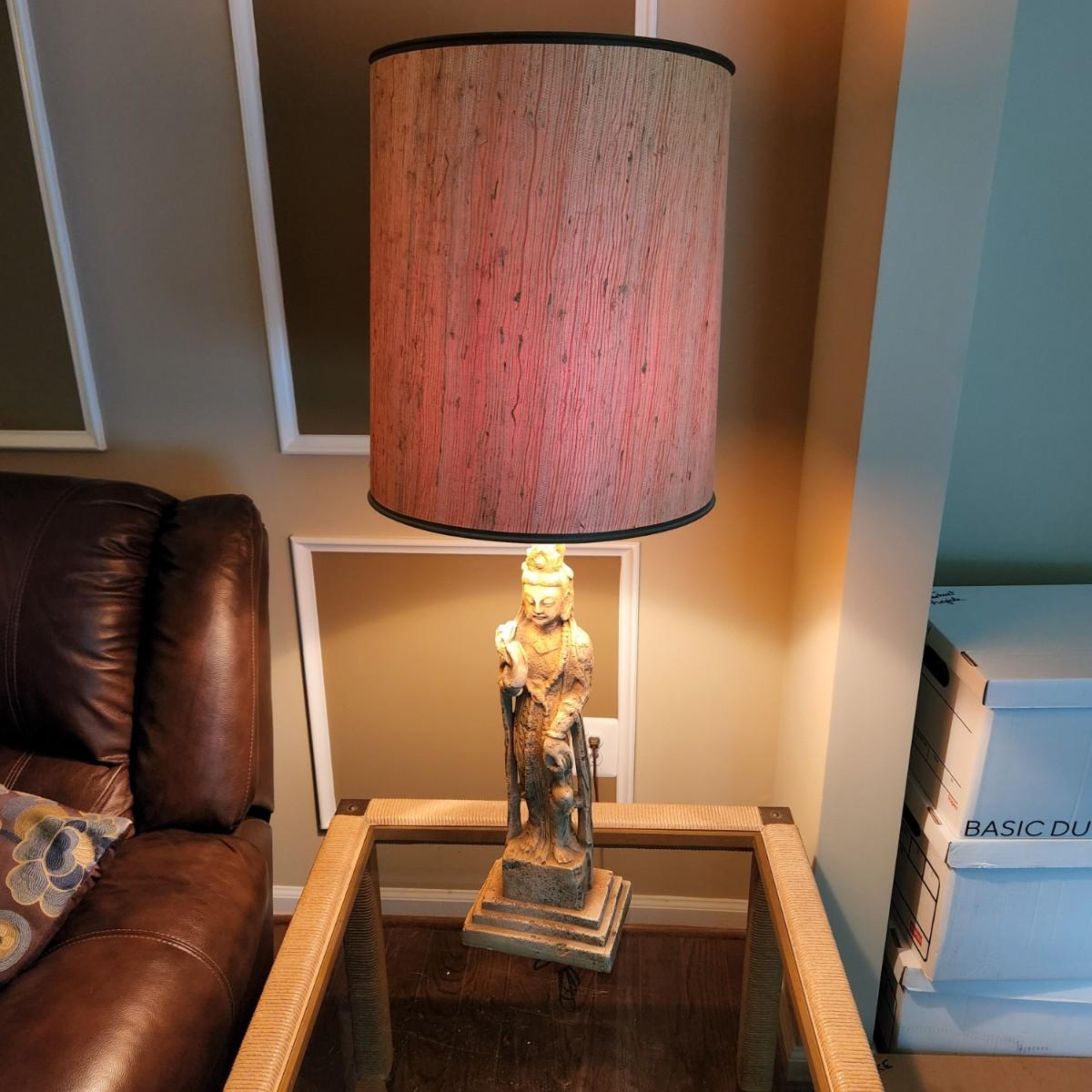 Mid Century Tall Asian Figural Table Lamp  38" to top of Shade