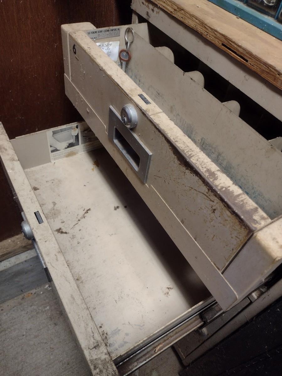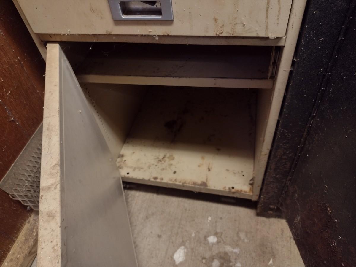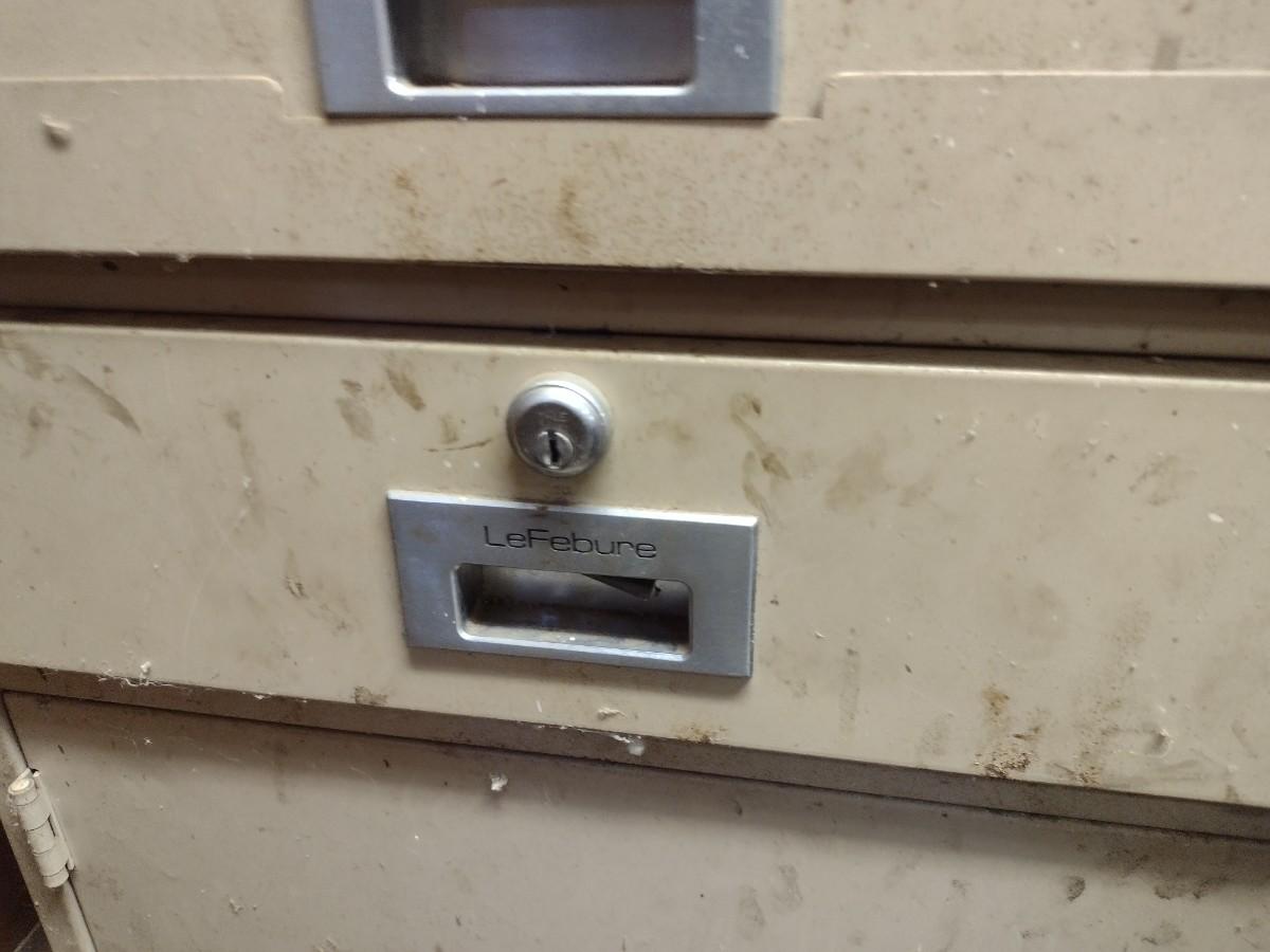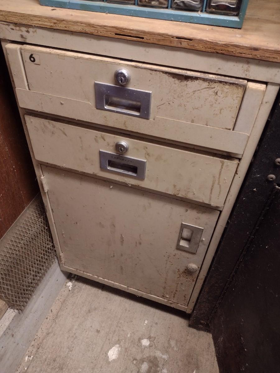 Heavy Steel Security Storage Cabinet with Key. There is a tractor with forks that will be available for lifting this item onto a trailer if needed. No other lifting assistance is available.