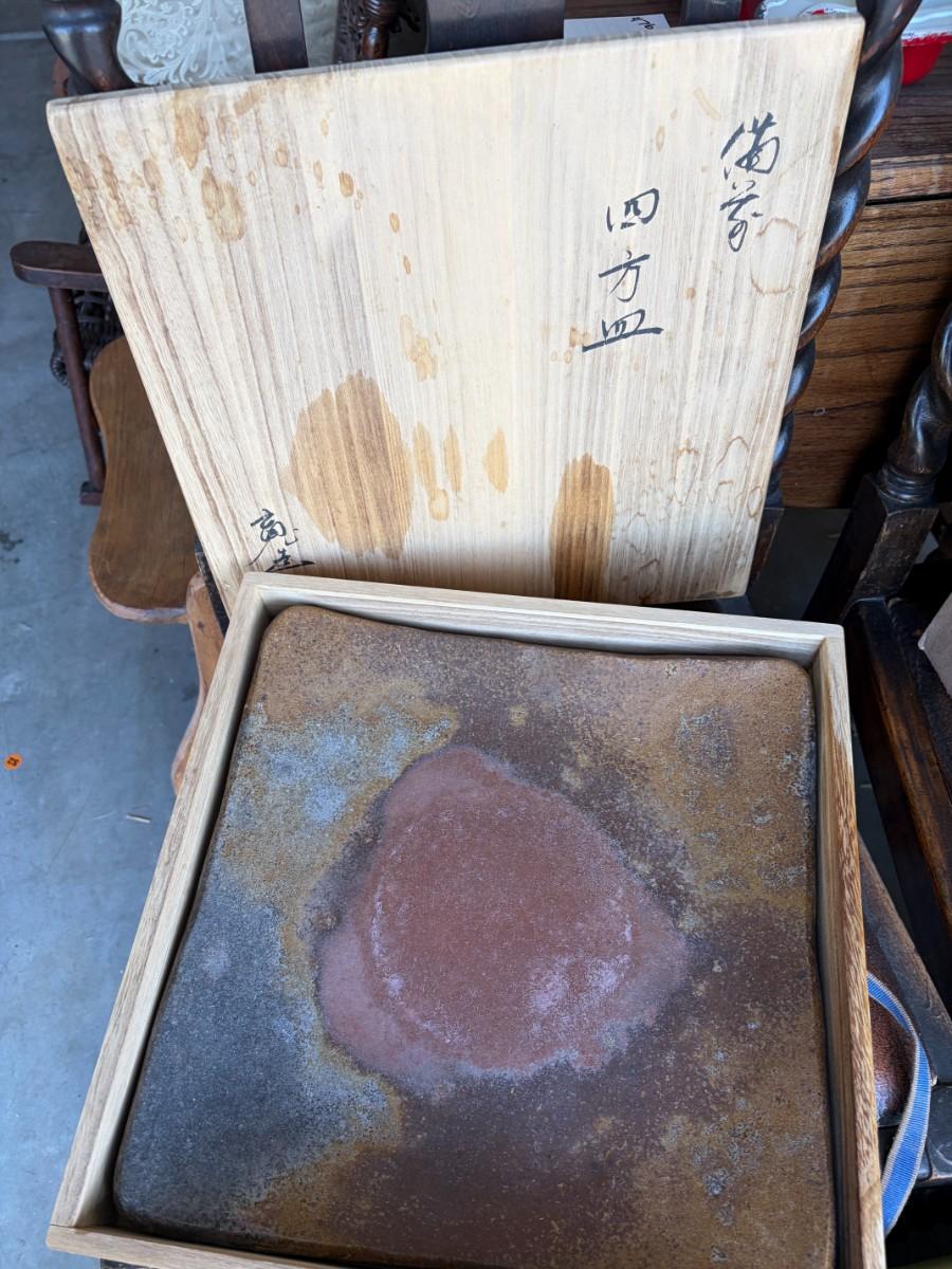 Heavy stone plate in wooden case
