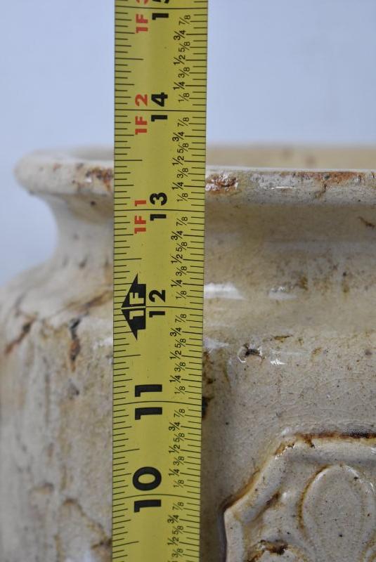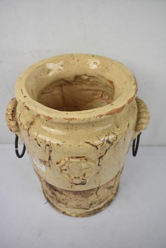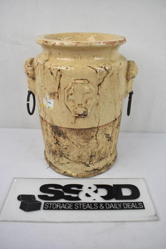Heavy Tan/Brown Planter/Pot with Fleur de Lis