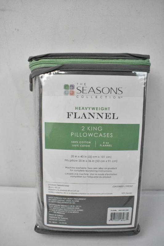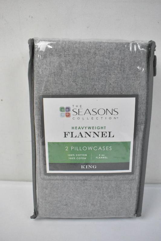 Heavy Weight Flannel 2 Pillowcases, Gray, King, The Seasons Collection - New