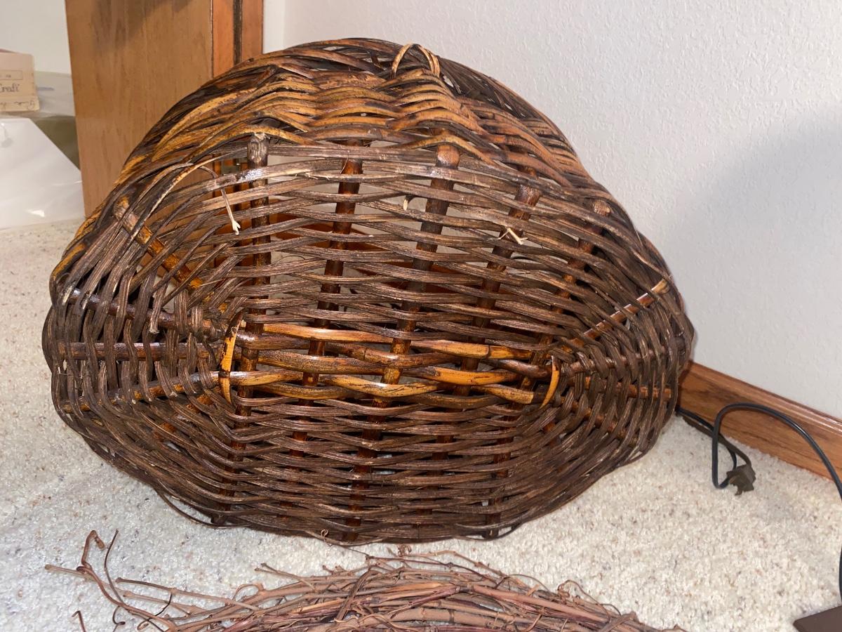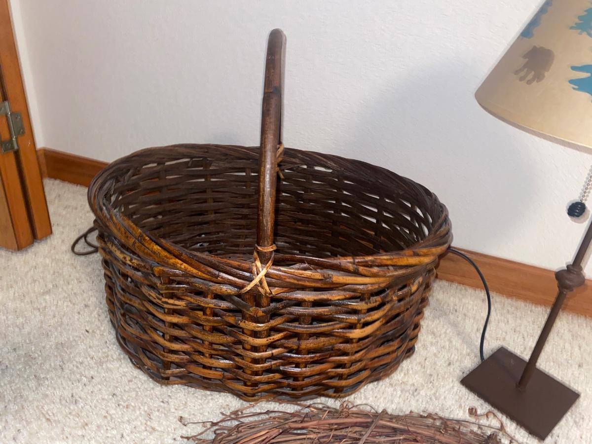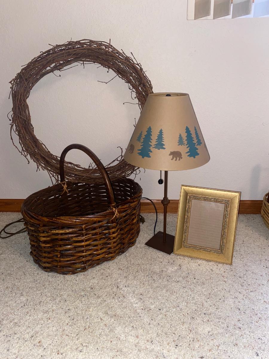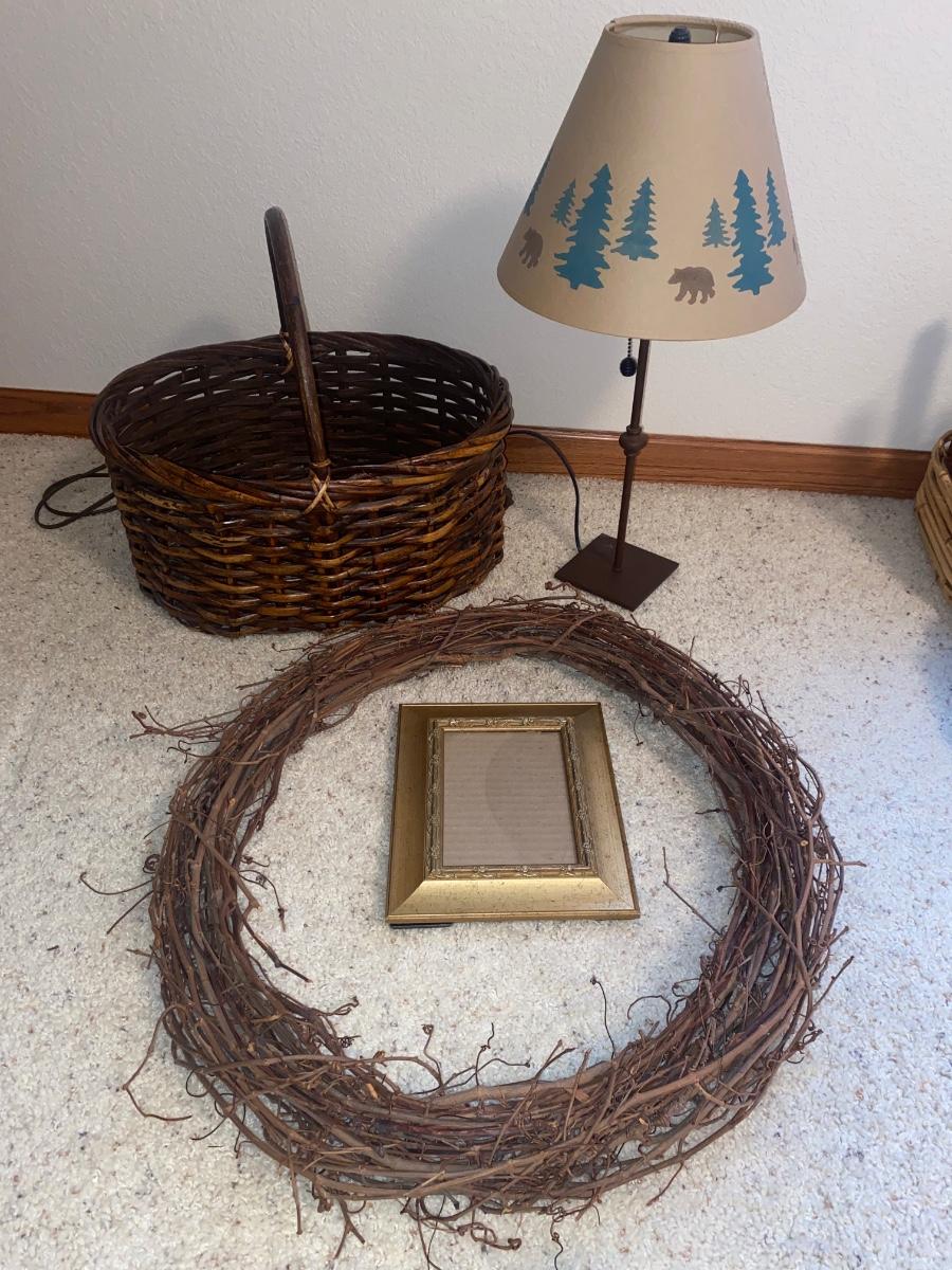 HEAVY WICKER BASKET, WREATH READY FOR YOUR SPECIAL TOUCH, LAMP AND 5x7 PHOTO FRAME