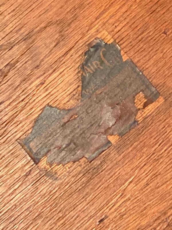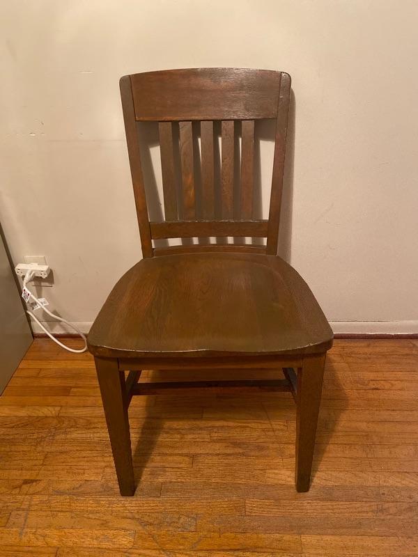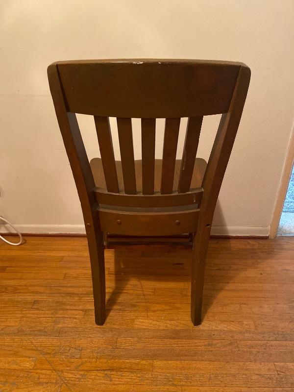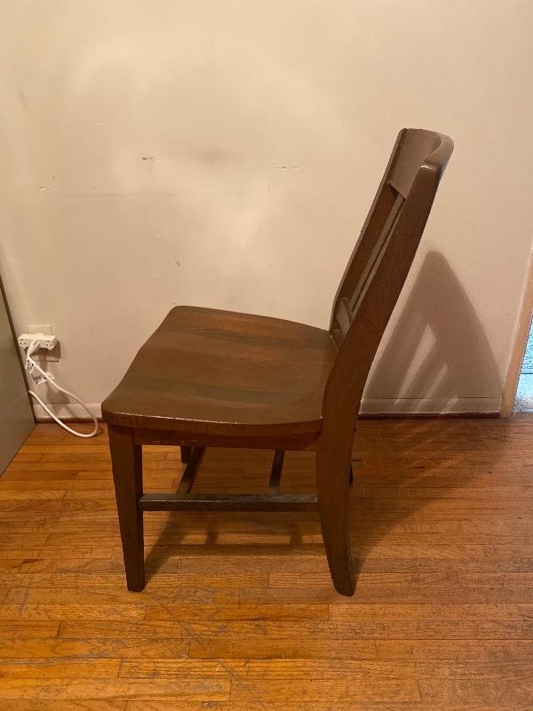Heavy solids wood desk chair. Very sturdy well built. Has part of an old