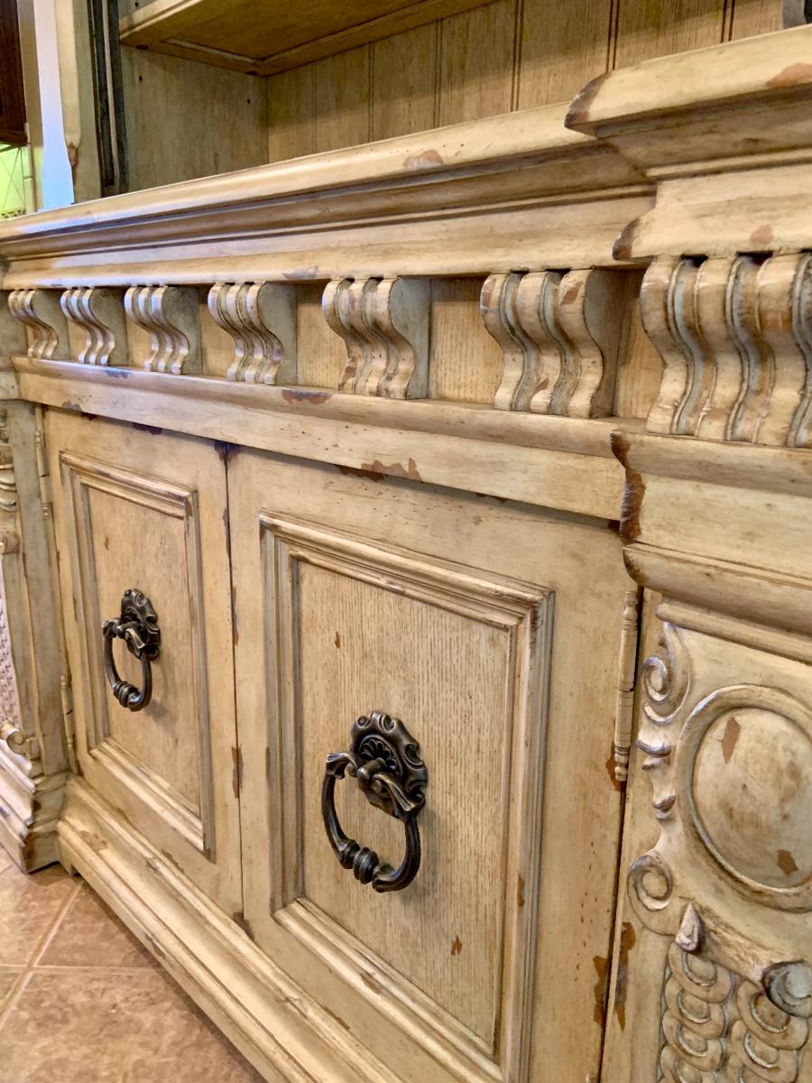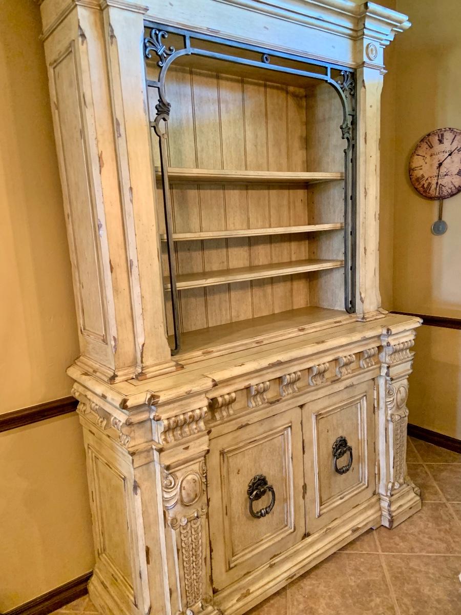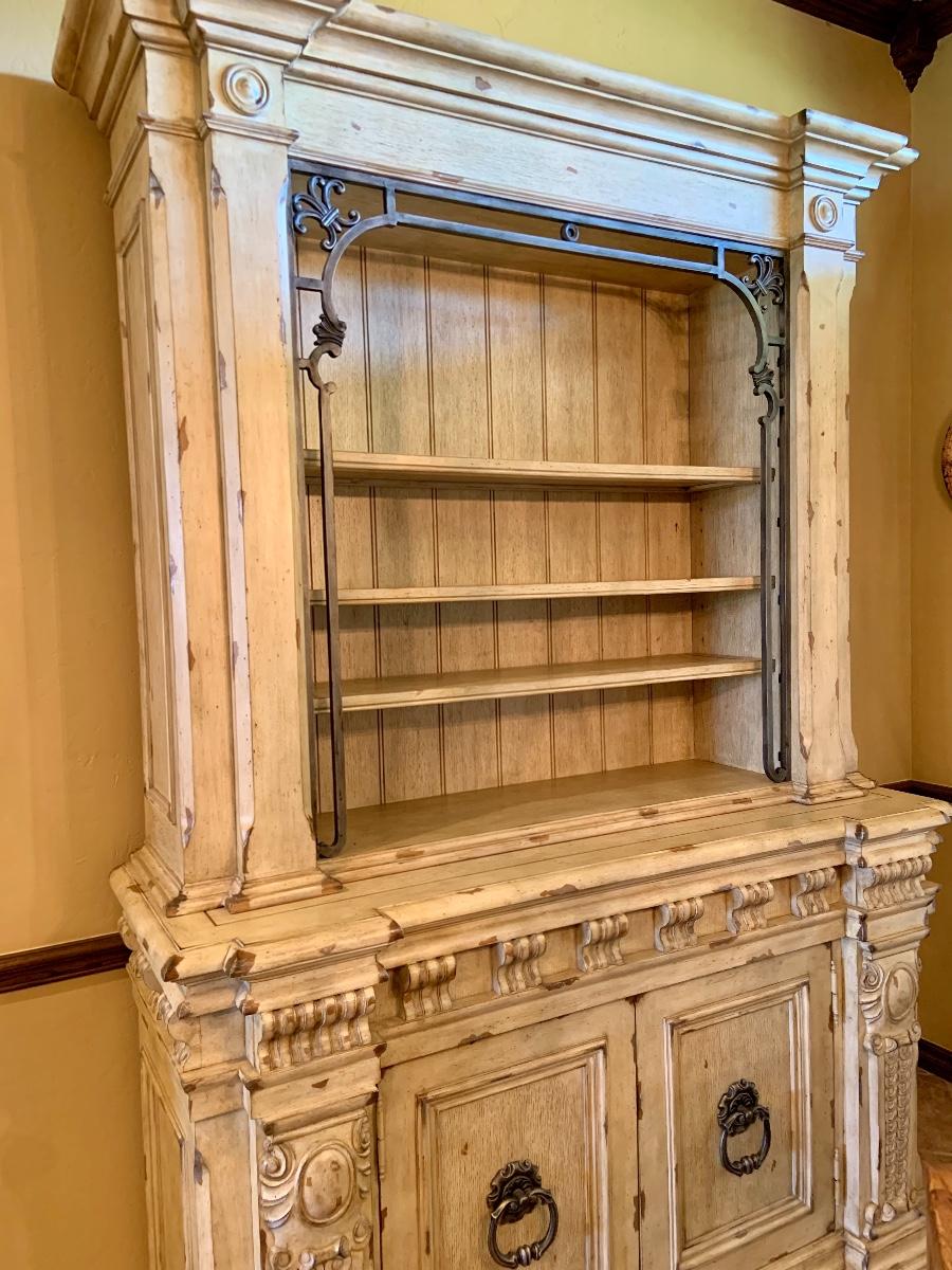 Heavy Wood Distressed Hutch with Metal Accents